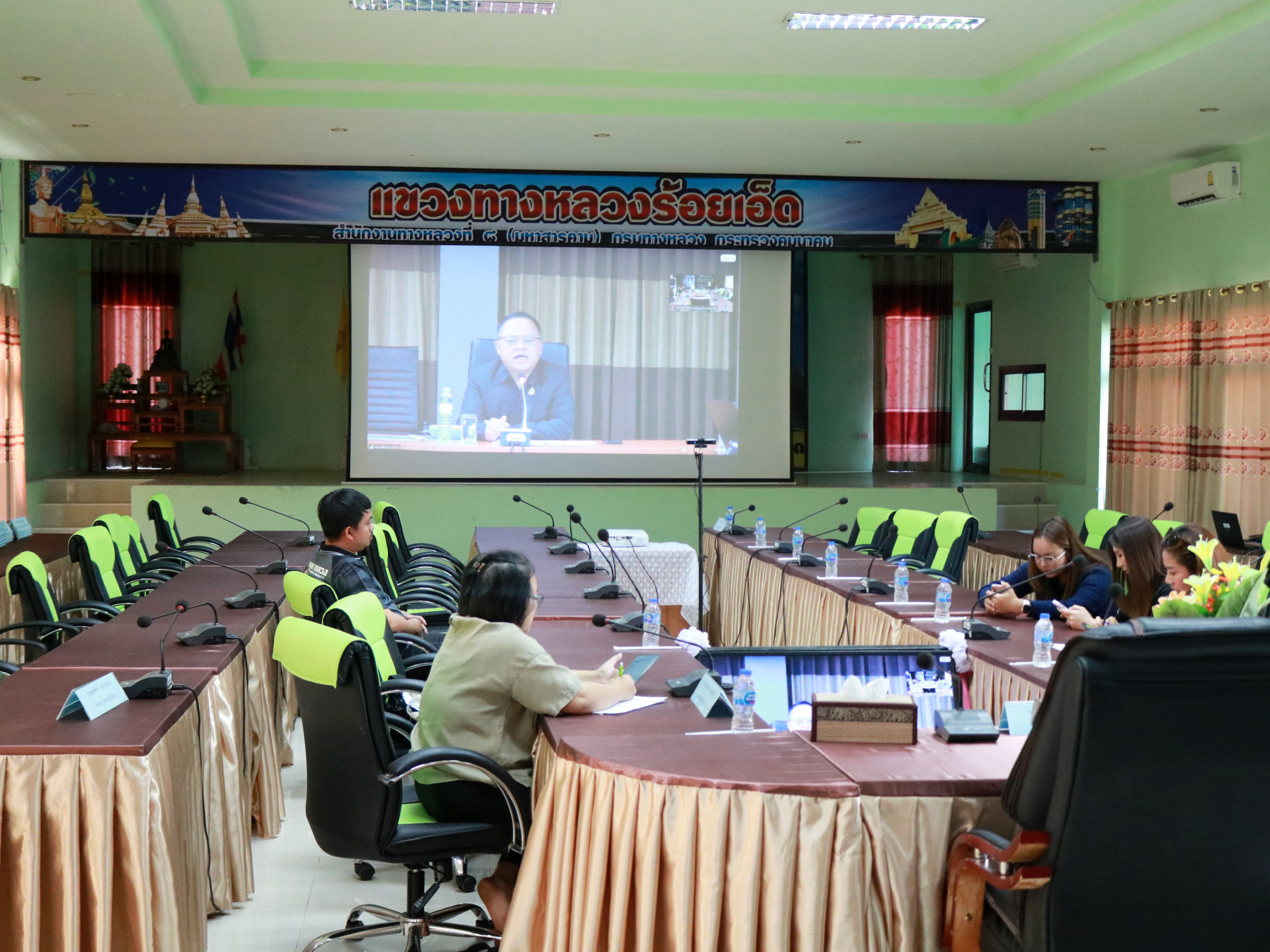 นางสาวศิวพร เหมือนสีเลา รองผู้อำนวยการแขวงทางหลวงร้อยเอ็ด ฝ่ายวิศวกรรม ,นายธวัช บุรำสูงเนิน นายช่างโยธาชำนาญงาน พร้อมเจ้าหน้าที่แขวงทางหลวงร้อยเอ็ด เข้าร่วมประชุมติดตามคณะทำงานการตรวจสอบความปลอดภัยระหว่างก่อสร้าง (Road Safety Audit During Construction) ครั้งที่ 1/2569 ผ่านสื่ออิเล็กทรอนิกส์แอปพลิเคชั่น Zoom Cloud Meeting ณ ห้องประชุมจุลละโพธิ แขวงทางหลวงร้อยเอ็ด