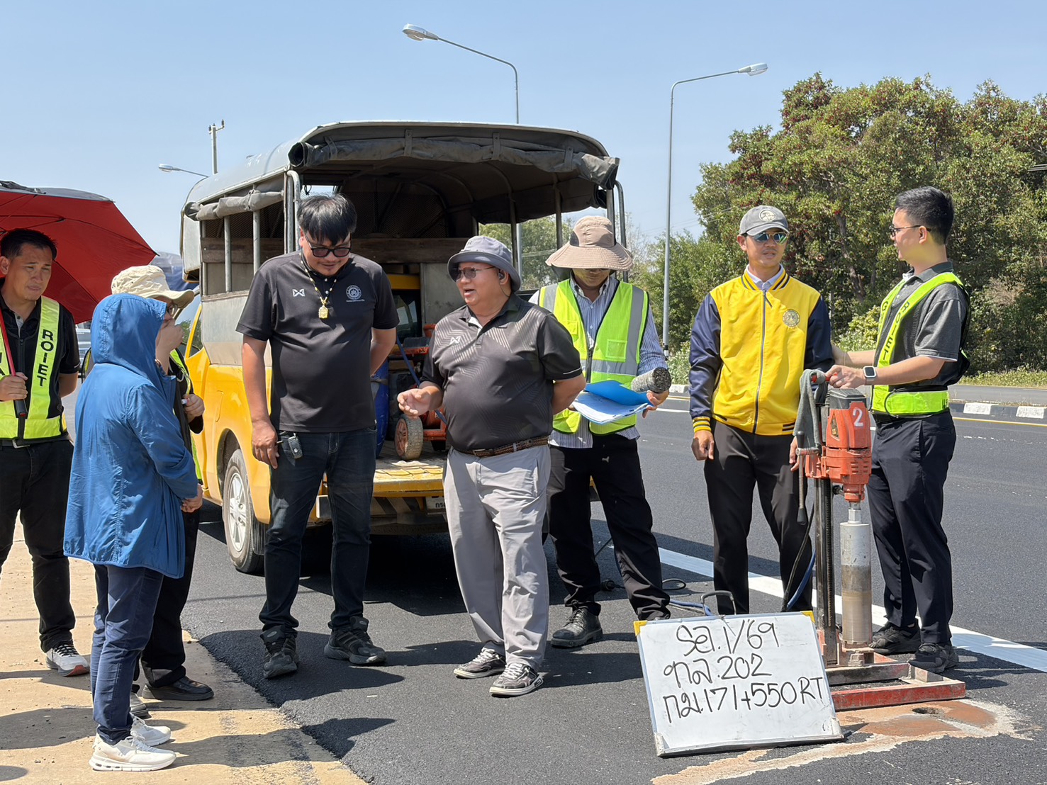 ร่วมตรวจรับงานก่อสร้าง ตามสัญญา ที่ รอ.1/2569 ลงวันที่ 17 ธันวาคม 2568 งานจ้างก่อสร้างกิจกรรมบำรุงรักษาทางหลวง ปี 2569 งานบูรณะผิวทางแอสฟัลต์คอนกรีต นำกลับมาใช้ใหม่ (IN PLACE) ในทางหลวงหมายเลข 202 ตอน ห้วยลำเตา – เกษตรวิสัย ระหว่าง กม.167+660 - กม.168+140 RT. และกม.169+250 – กม.171+720 RT. โดยมี บริษัท ยิ่งเจริญก่อสร้างบุรีรัมย์ จำกัด เป็นผู้รับจ้าง