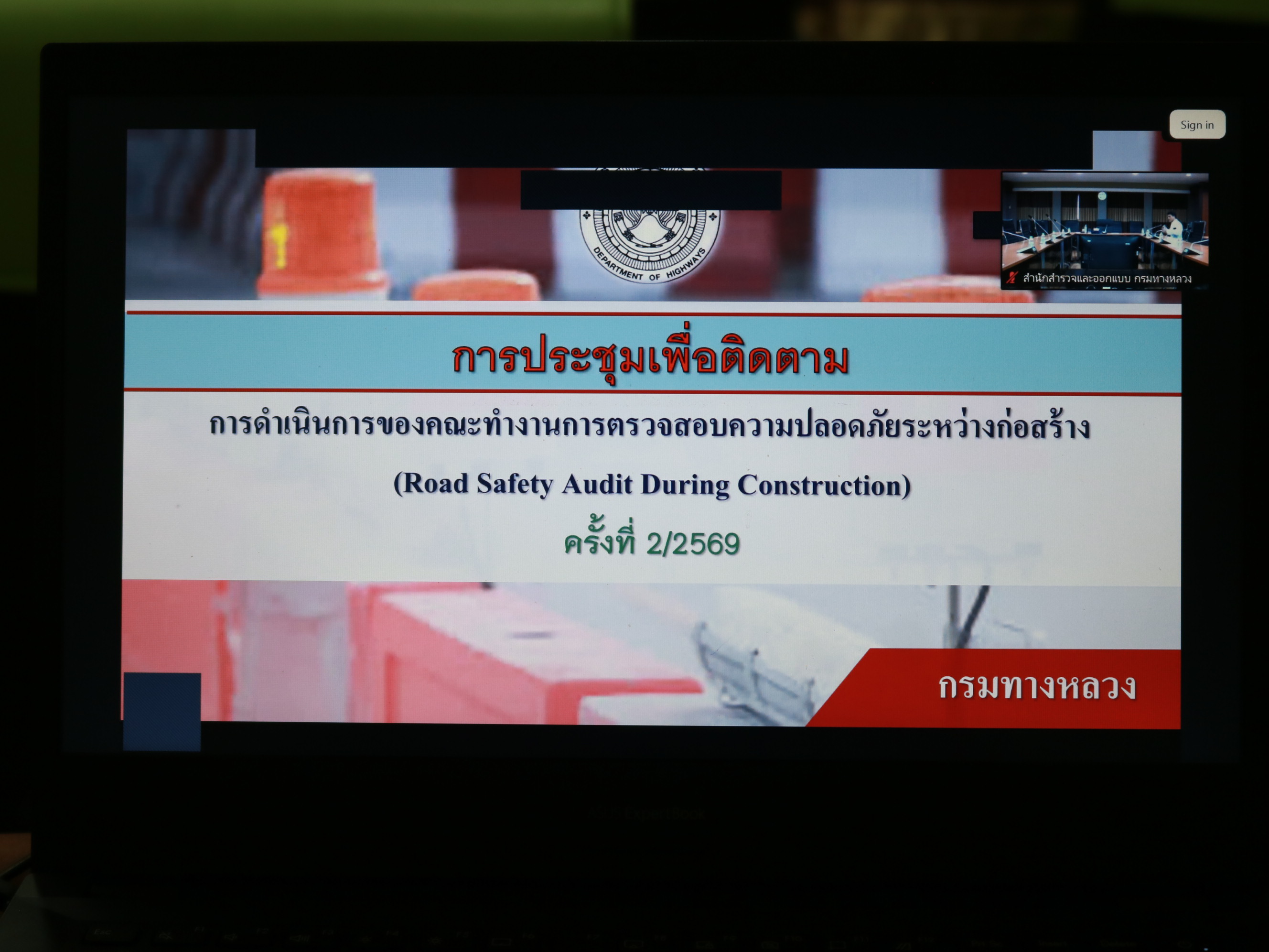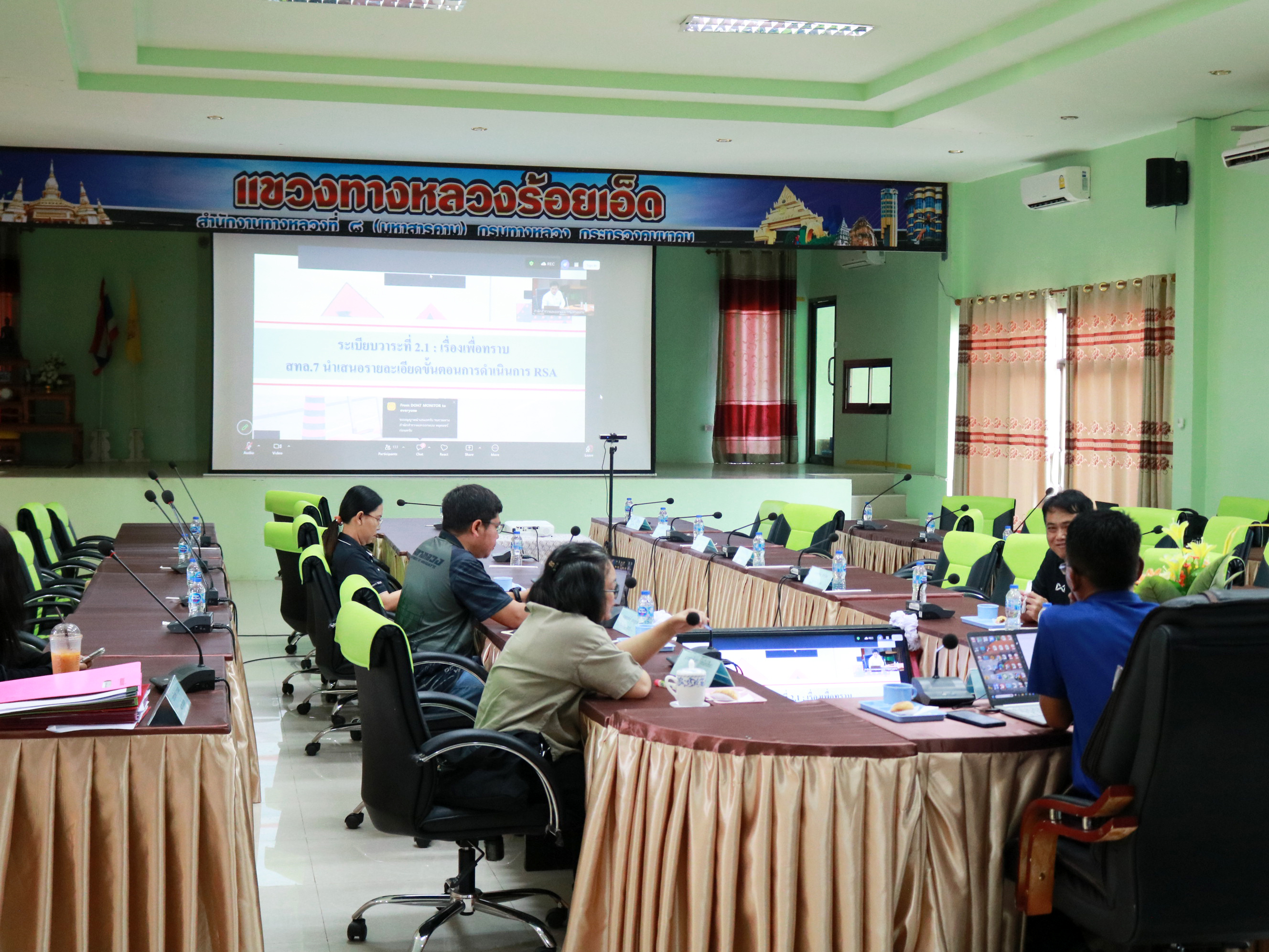 นายสถิต คำพิชิต รองผู้อำนวยแขวงทางหลวงร้อยเอ็ด ฝ่ายปฏิบัติการ ,นางสาวศิวพร เหมือนสีเลา รองผู้อำนวยการแขวงทางหลวงร้อยเอ็ด ฝ่ายวิศวกรรม และเจ้าหน้าที่แขวงทางหลวงร้อยเอ็ด ได้เข้าร่วมประชุมคณะทำงานการตรวจสอบความปลอดภัยทางถนนระหว่างก่อสร้าง Road Safty Audit During Construction (RSA) ครั้งที่ 2/2569 สำหรับงานปีเดียว โดยมี นายโกสินทร์ เจติยานนท์ ผู้อำนวยการสำนักวิเคราะห์และตรวจสอบ รักษาการในตำแหน่ง วิศวกรใหญ่ด้านอำนวยความปลอดภัย เป็นประธานในการประชุม ผ่านระบบ Zoom Cloud Meeting ณ ห้องประชุมจุลละโพธิ แขวงทางหลวงร้อยเอ็ด