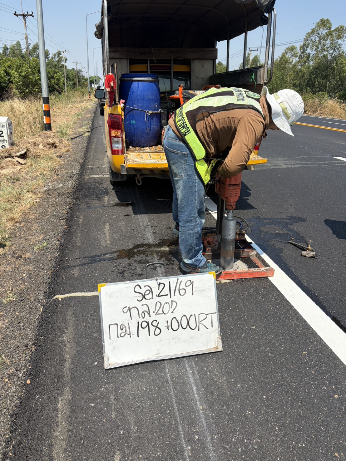 ร่วมตรวจรับงานก่อสร้าง ตามสัญญา ที่ รอ.25/2569 งานจ้างก่อสร้างกิจกรรมบำรุงรักษาทางหลวง ปี 2569 งานปรับปรุงผิวทางแอสฟัลต์คอนกรีต นำกลับมาใช้ใหม่ (IN PLACE) งานบำรุงตามกำหนดเวลา ในทางหลวงหมายเลข 202 ตอน เกษตรวิสัย - สุวรรณภูมิ ตอน 1 ระหว่าง กม.195+560 - กม.195+800 ,กม.197+100 - กม.197+965 และกม.198+100 - กม.199+015