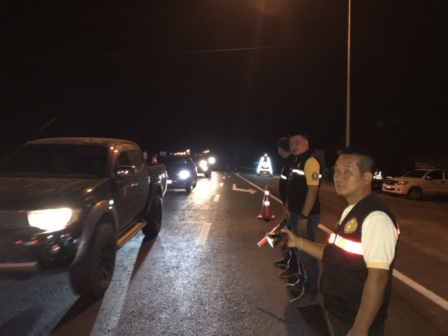 นายพงศกร จุลละโพธิ ผู้อำนวยการแขวงทางหลวงร้อยเอ็ด ร่วมกับ เจ้าหน้าที่ตำรวจ จากสถานีตำรวจทางหลวง 1 กองกำกับการ 4 ,เจ้าหน้าที่ฝ่ายปกครอง อำเภอเกษตรวิสัย , เจ้าหน้าที่สำนักงานขนส่งจังหวัดร้อยเอ็ด และเจ้าหน้าที่กู้ภัยทางหลวง ร่วมตั้งจุดตรวจ จุดสกัดความเร็ว และตรวจวัดระดับแอลกอฮอล์ เพื่อเฝ้าระวังและป้องกันการเกิดอุบัติเหตุ รวมทั้งอำนวยความสะดวกปลอดภัย ให้กับผู้ใช้เส้นทางช่วงเทศกาลสงกรานต์ ปี 2562 ในทางหลวงหมายเลข 202 ตอน ห้วยลำเตา - เกษตรวิสัย ที่ กม.186+475 (บริเวณสามแยกโรงพยาบาลเกษตรวิสัย อ.เกษตรวิสัย จ.ร้อยเอ็ด)