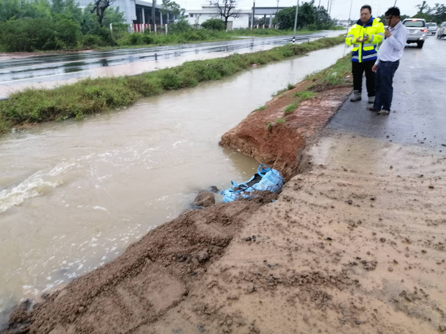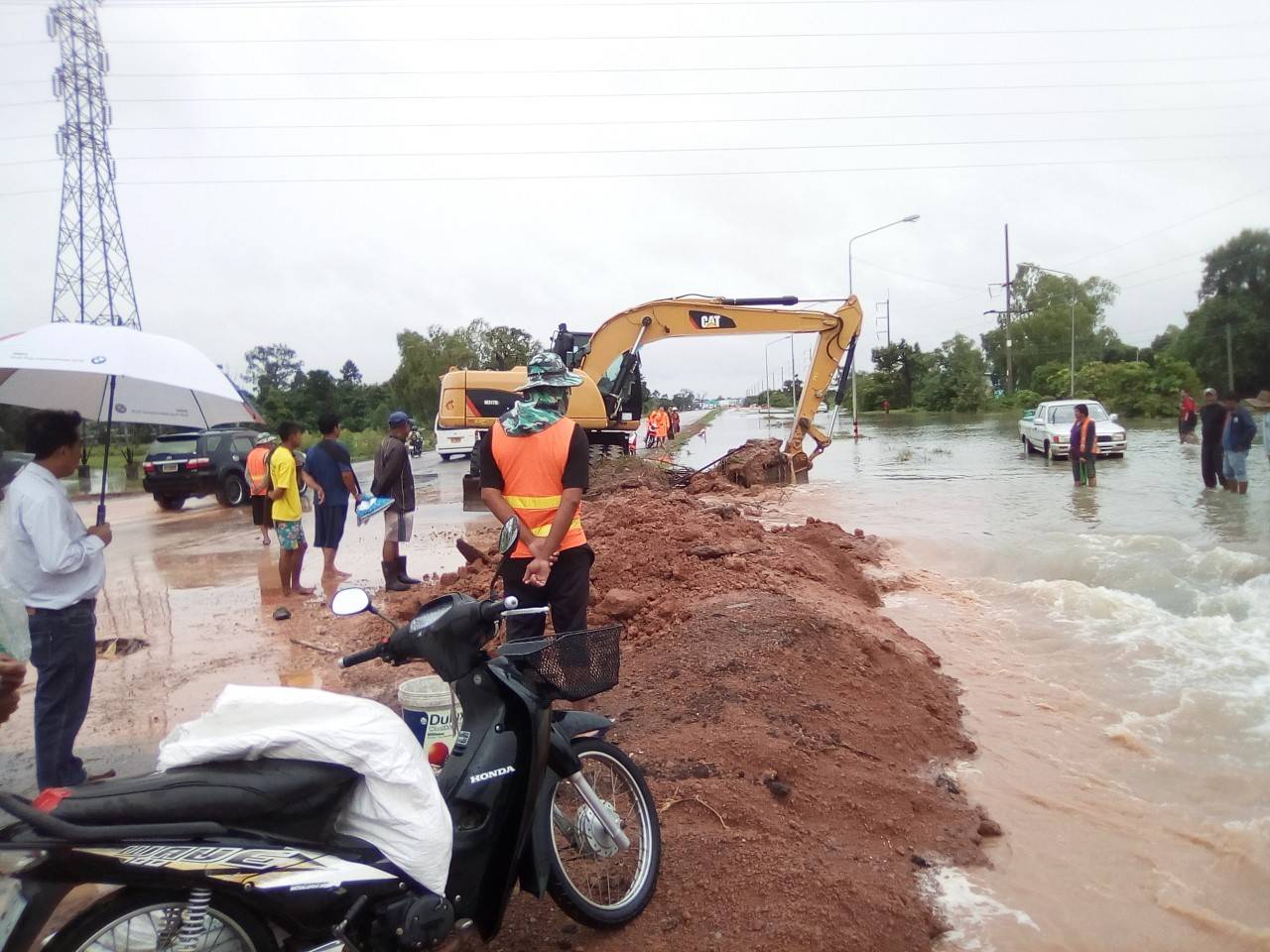 ทั้งนี้ทางโครงการฯ กับผู้รับจ้างได้ดำเนินการติดตั้งป้ายเตือน พร้อมทั้งจัดเจ้าหน้าที่เฝ้าระวังสถานการณ์น้ำท่วมอย่างใกล้ชิด และได้เบี่ยงเส้นทางการจราจร เพื่อให้รถวิ่งบนคันทางใหม่ที่กำลังก่อสร้าง เพื่ออำนวยความสะดวก ปลอดภัย ให้กับผู้ใช้เส้นทาง