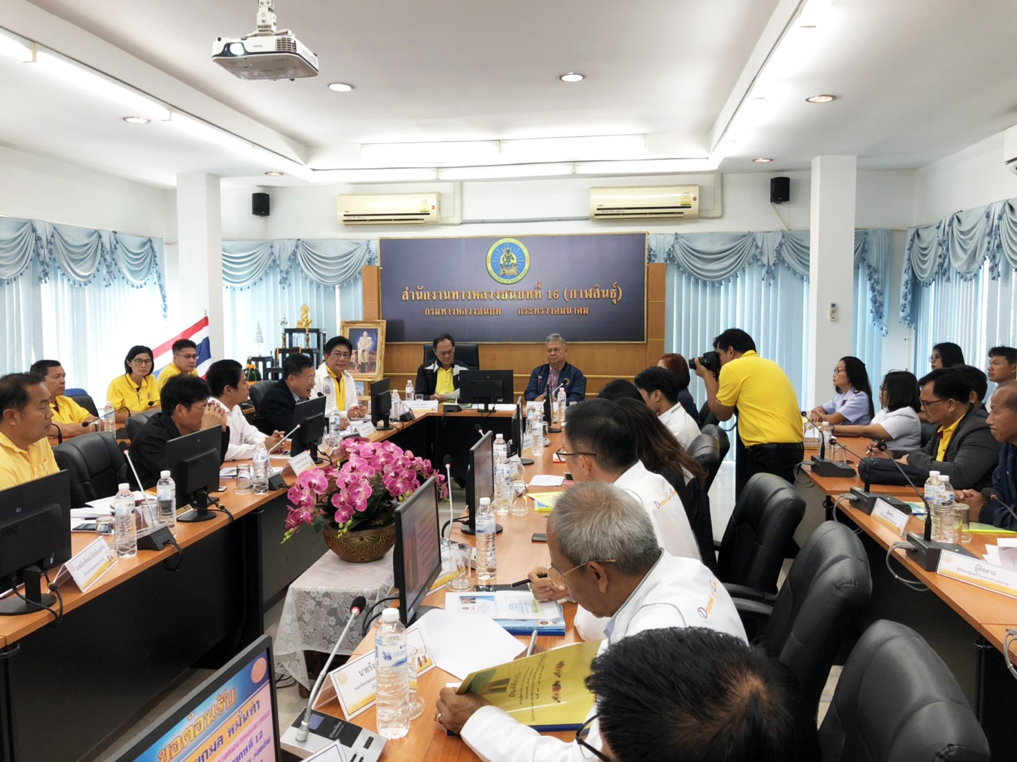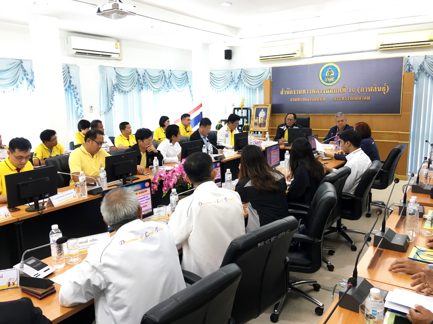 นายกมล หมั่นทำ ผู้ตรวจราชการกระทรวงคมนาคมและคณะฯ ได้เดินทางมาตรวจราชการเพื่อติดตามความก้าวหน้าผลการดำเนินงานตามแผนงาน/โครงการของหน่วยงานในสังกัดกระทรวงคมนาคมในพื้นที่เขตตรวจราชการที่ 12 (กาฬสินธุ์ ขอนแก่น มหาสารคาม ร้อยเอ็ด) โดยมีนายบัญชา สุทัยบำรุง ผู้อำนวยการสำนักงานทางหลวงที่ 8 (มหาสารคาม) ,นายกฤตภาส อุตรวีระการ รองผู้อำนวยการสำนักงานทางหลวงที่ 8 (มหาสารคาม) ตำแหน่งที่ 2 ,นายพงศกร จุลละโพธิ ผู้อำนวยการแขวงทางหลวงร้อยเอ็ด ,ดร.เกียรติพงษ์ เจียรนัยธนะกิจ ผู้อำนวยการแขวงทางหลวงกาฬสินธุ์ พร้อมด้วยหน่วยงานในสังกัดกระทรวงคมนาคม ร่วมให้การต้อนรับและบรรยายสรุปผลการดำเนินงาน ณ ห้องประชุมสำนักงานทางหลวงชนบทที่ 16 (กาฬสินธุ์)