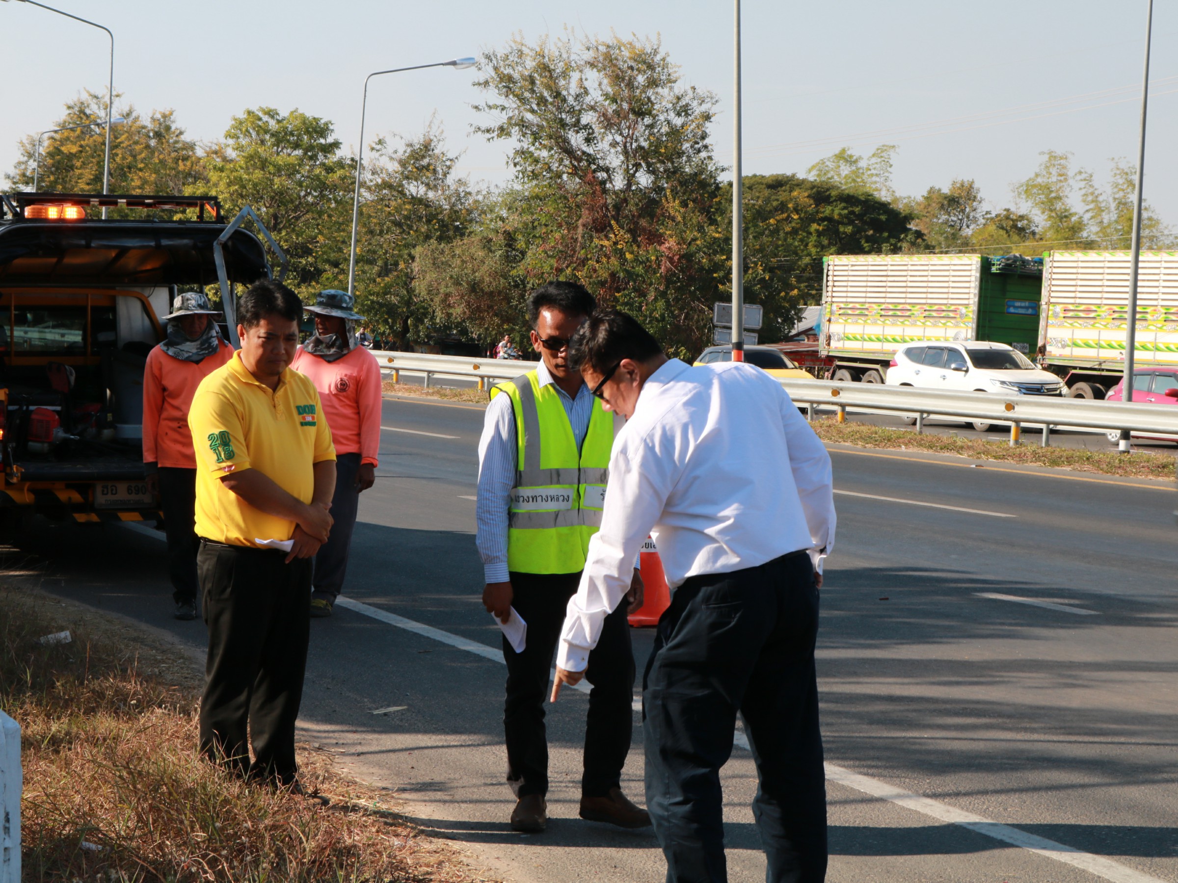 นายบัญชา สุทัยบำรุง ผู้อำนวยการสำนักงานทางหลวงที่ 8 (มหาสารคาม) พร้อมด้วย นายสถิต คำพิชิต รองผู้อำนวยการแขวงทางหลวงร้อยเอ็ด ฝ่ายปฏิบัติการ และนายณัฐพล เยี่ยมชัยภูมิ หัวหน้าหมวดทางหลวงร้อยเอ็ด ลงพื้นที่ตรวจสอบจุดที่เกิดอุบัติเหตุ จุดเสี่ยง ในทางหลวงหมายเลข 23 ตอน ห้วยแอ่ง - ร้อยเอ็ด ที่ กม.103+000 และ ที กม.92+000 พร้อมให้แนวทางการแก้ไขเพื่อป้องกันการเกิดอุบัติเหตุครั้งต่อไป