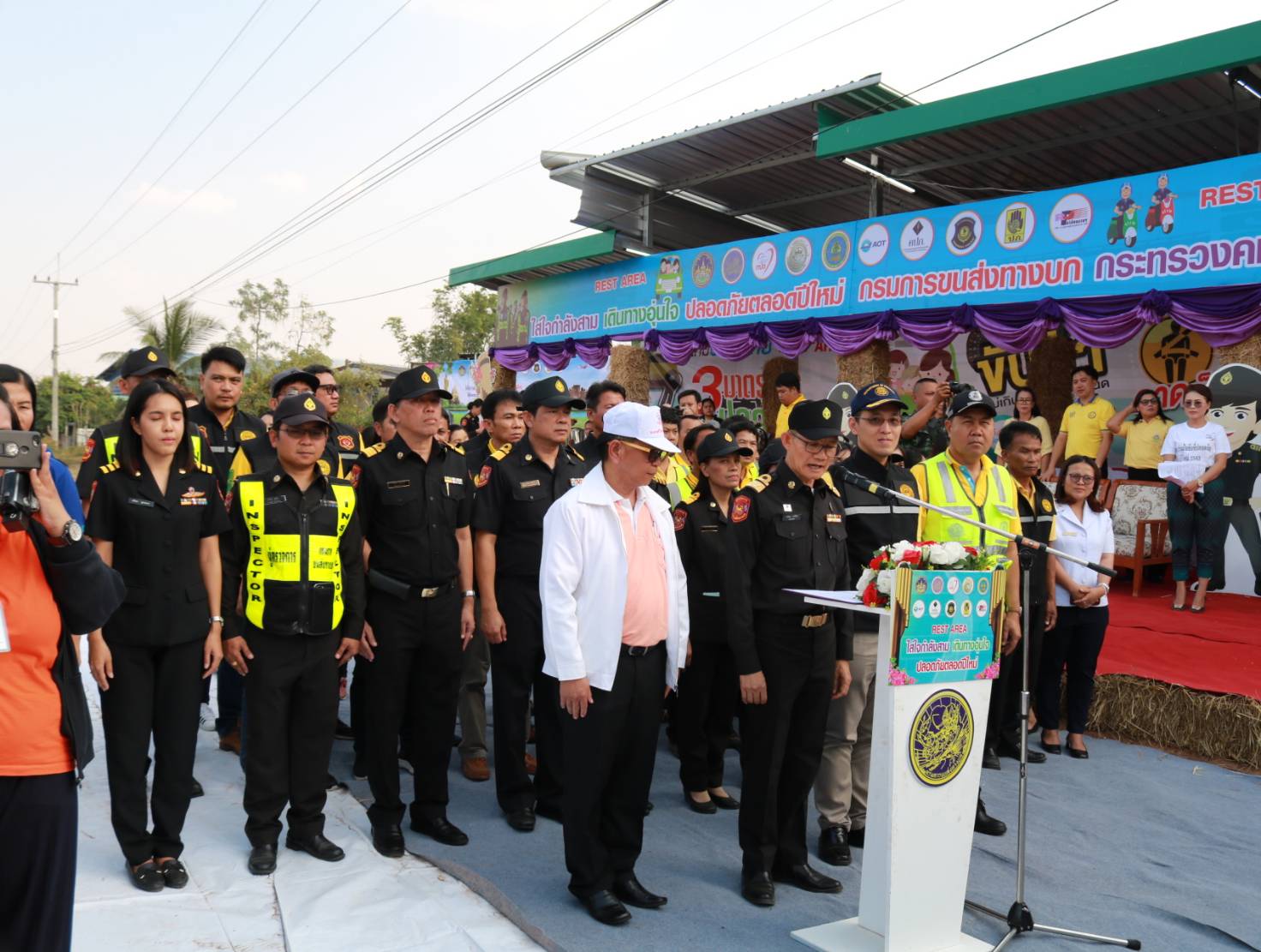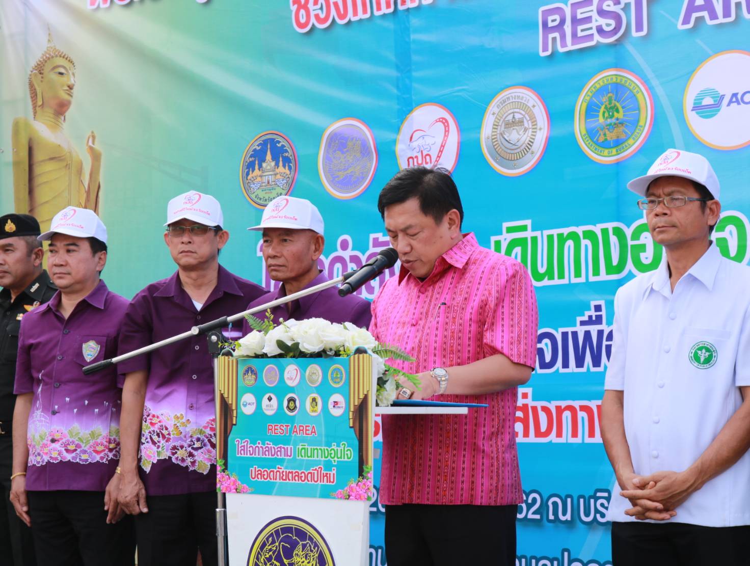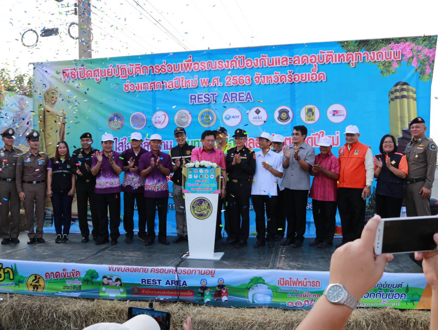 นายเกียรติพงษ์ เจียรนัยธนะกิจ ผู้อำนวยการแขวงทางหลวงร้อยเอ็ด ,คณะเจ้าหน้าที่แขวงทางหลวงร้อยเอ็ด พร้อมด้วยคณะเจ้าหน้าที่จากสำนักงานขนส่งจังหวัดร้อยเอ็ด , แขวงทางหลวงชนบทจังหวัดร้อยเอ็ด , ท่าอากาศยานร้อยเอ็ด , สำนักงานคณะกรรมการกำกับและส่งเสริมการประกอบธุรกิจประกันภัย (คปภ.) และ เจ้าหน้าที่ตำรวจทางหลวง 1 กองกำกับการ 4 ร่วมพิธี “เปิดศูนย์ปฏิบัติการร่วมรณรงค์ป้องกันอุบัติเหตุทางถนน (Rest Area) ช่วงเทศกาลปีใหม่ พ.ศ. 2563” โดยมีนายวันชัย คงเกษม ผู้ว่าราชการจังหวัดร้อยเอ็ด เป็นประธานในพิธีเปิดศูนย์ฯ ณ บริเวณถนนทางหลวงหมายเลข 23 ตอน ห้วยแอ่ง - ร้อยเอ็ด ที่ กม.98+000 บ้านหว่านไฟ ตำบลปอภาร อำเภอเมืองร้อยเอ็ด จังหวัดร้อยเอ็ด เพื่ออำนวยความสะดวก ปลอดภัยและให้บริการกับประชาชน ผู้ใช้เส้นทางในช่วงเทศกาลปีใหม่ 2563 ระหว่างวันที่ 27 ธ.ค. 63 – 2 ม.ค. 63