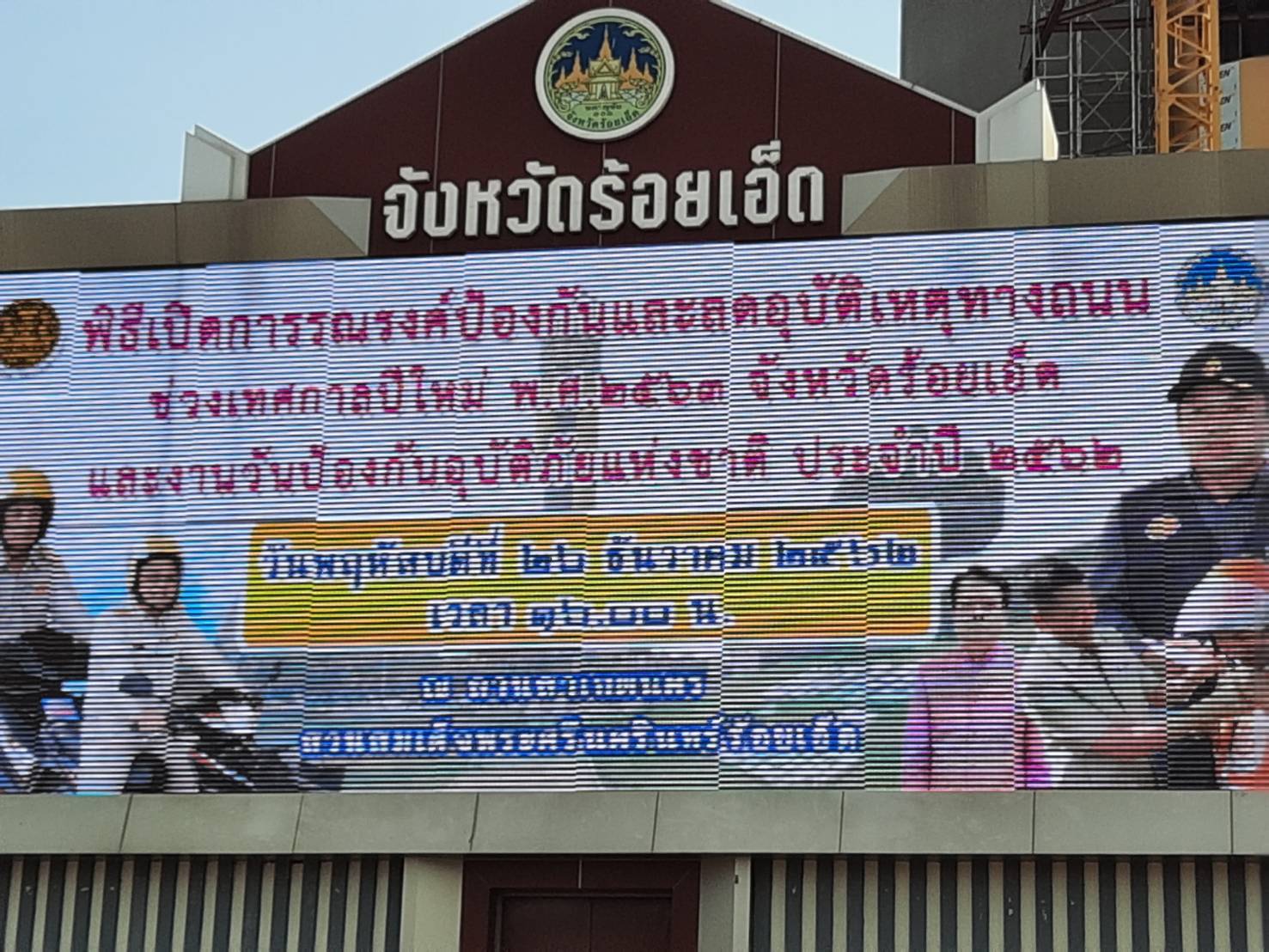 นายเกียรติพงษ์ เจียรนัยธนะกิจ ผู้อำนวยการแขวงทางหลวงร้อยเอ็ด มอบหมายให้นายณัฐพล เยี่ยมชัยภูมิ หัวหน้าหมวดทางหลวงร้อยเอ็ด เข้าร่วม”พิธีเปิดการรณรงค์ป้องกันและลดอุบัติเหตุทางถนนช่วงเทศกาลปีใหม่ พ.ศ. 2563 จังหวัดร้อยเอ็ด และงานวันป้องกันอุบัติเหตุแห่งชาติ ประจำปี 2562” โดยมีนายวันชัย คงเกษม ผู้ว่าราชการ จังหวัดร้อยเอ็ด เป็นประธานในพิธีฯ ณ บริเวณลานสาเกตนคร สวนสมเด็จพระศรีนครินทร์ร้อยเอ็ด อำเภอเมืองร้อยเอ็ด จังหวัดร้อยเอ็ด