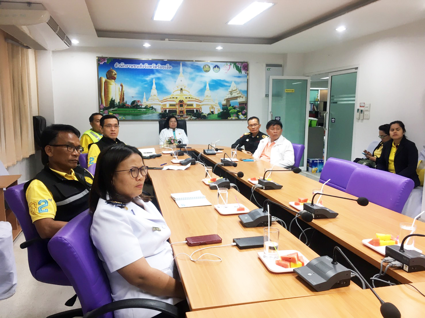 นายเกียรติพงษ์ เจียรนัยธนะกิจ ผู้อำนวยการแขวงทางหลวงร้อยเอ็ด พร้อมด้วย หัวหน้าส่วนราชการสังกัดกระทรวงคมนาคม เข้าร่วมรับฟังการชี้แจงนโยบายการเตรียมความพร้อม อำนวยความสะดวก และปลอดภัยในช่วงเทศกาลปีใหม่ 2563 ผ่าน vdo conference จากท่านรัฐมนตรีว่าการกระทรวงคมนาคม ณ กรมขนส่งทางบก จังหวัดร้อยเอ็ด
