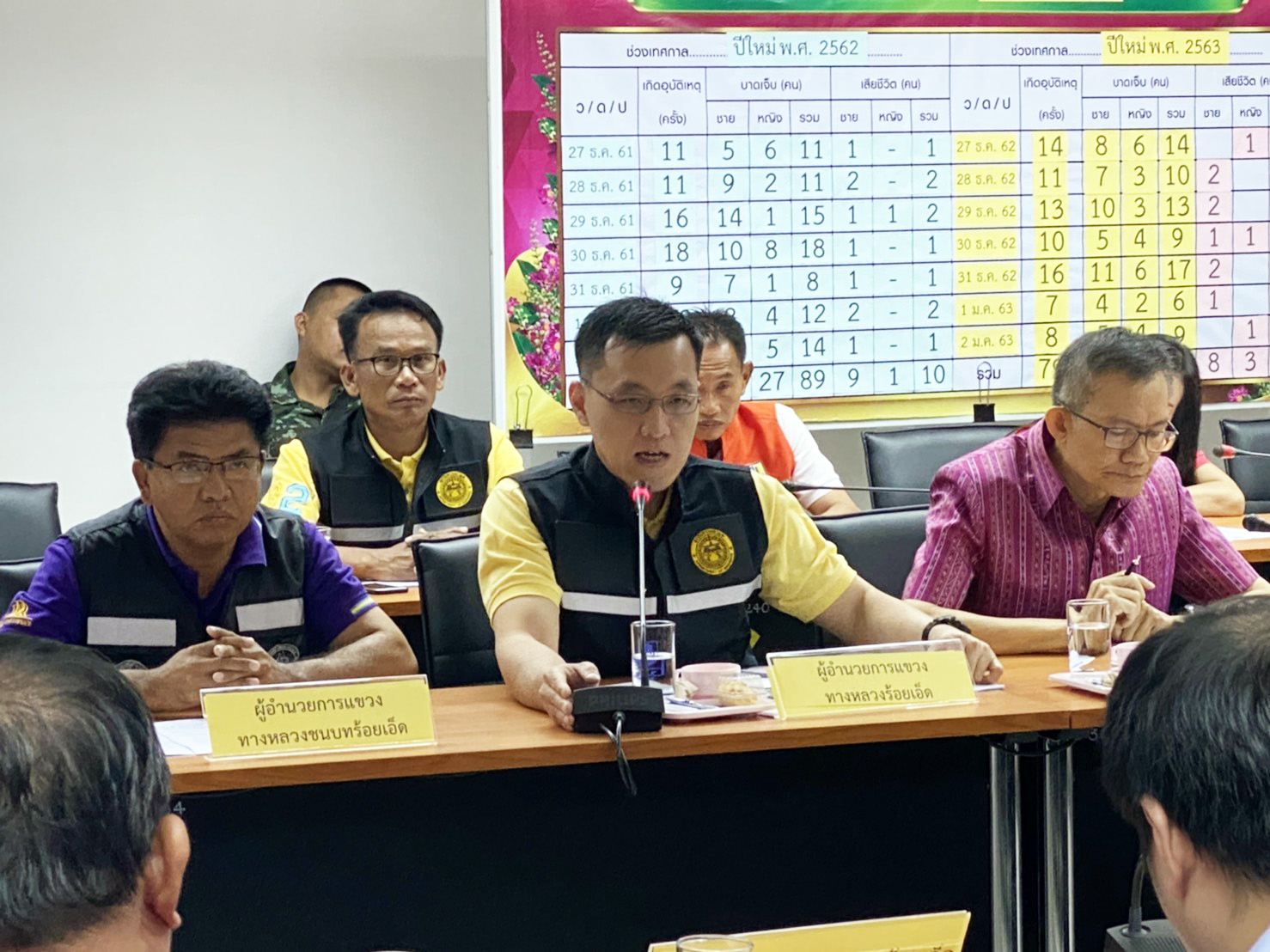 นายเกียรติพงษ์ เจียรนัยธนะกิจ ผู้อำนวยการแขวงทางหลวงร้อยเอ็ด เข้าร่วมแถลงข่าวสรุปผลการดำเนินการป้องกันและลดอุบัติเหตุทางถนนช่วงเทศกาลปีใหม่ พ.ศ. 2563 (ระหว่างวันที่ 27 ธ.ค. 62 – 2 ม.ค. 63) ร่วมกับหัวหน้าส่วนราชการในจังหวัดร้อยเอ็ด โดยมีนายวันชัย คงเกษม ผู้ว่าราชการจังหวัดร้อยเอ็ด เป็นประธานในการแถลงข่าวฯ ณ ศูนย์ปฏิบัติการป้องกันและลดอุบัติเหตุทางถนนช่วงเทศกาลปีใหม่ พ.ศ. 2563 จังหวัดร้อยเอ็ด ห้องประชุมพระเวสสันดร ชั้น 3 ศาลากลางจังหวัดร้อยเอ็ด