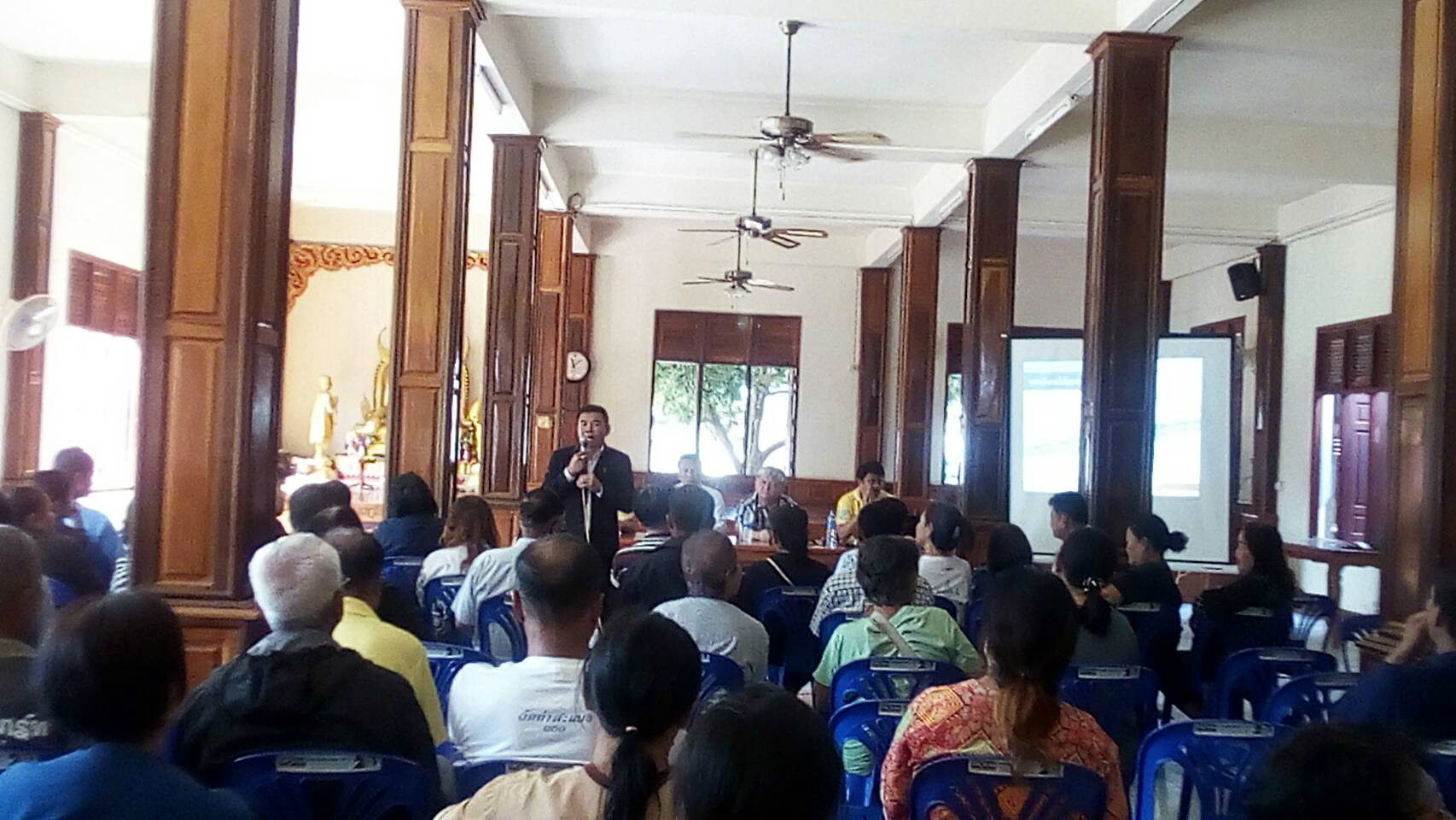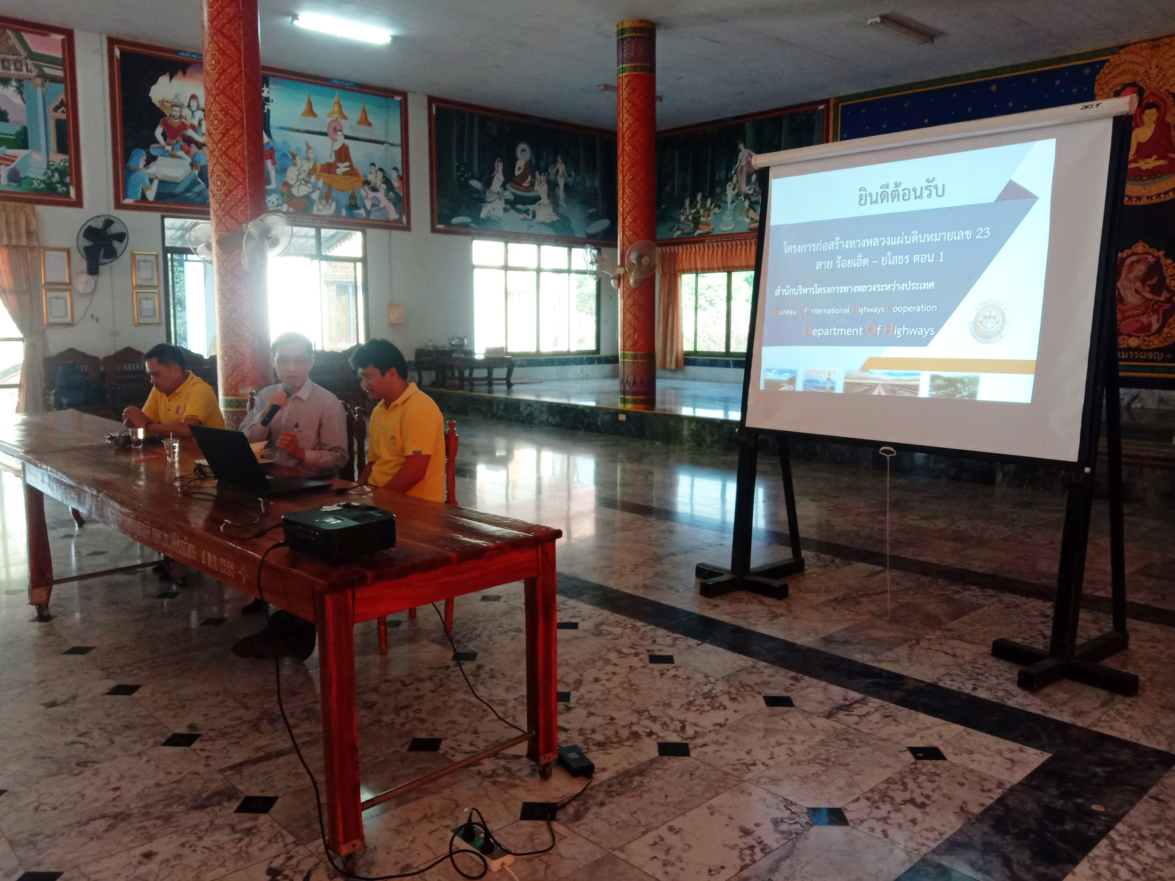 นายเกียรติพงษ์ เจียรนัยธนะกิจ ผู้อำนวยการแขวงทางหลวงร้อยเอ็ด พร้อมด้วยคณะเจ้าหน้าที่แขวงทางหลวงร้อยเอ็ด และวิศวกรควบคุมงานโครงการก่อสร้างทางหลวงหมายเลข 23 สาย ร้อยเอ็ด – ยโสธร ตอน 1 ร่วมประชุมเพื่อชี้แจงให้กับราษฏรในพื้นที่ได้รับทราบเกี่ยวกับการปรับรูปแบบการก่อสร้างจุดกลับรถใต้สะพานลำน้ำชี (บ้านท่าสะแบง) ณ วัดท่าสะแบง และวัดโสภณวิหาร อำเภอทุ่งเขาหลวง จังหวัดร้อยเอ็ด