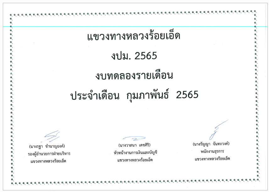 งบทดลอง เดือนกุมภาพันธ์ ปี 2565