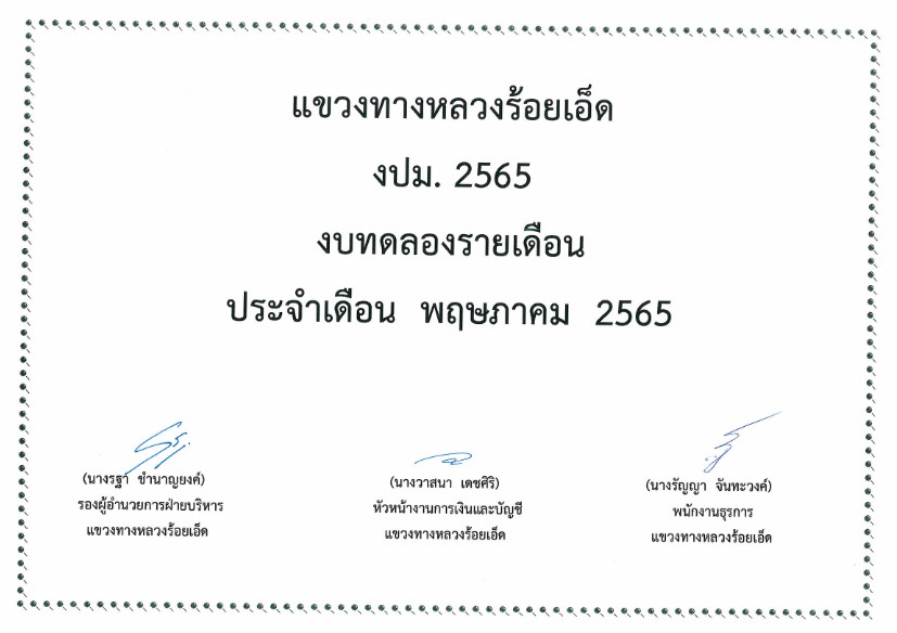 งบทดลอง เดือนพฤษภาคม ปี 2565