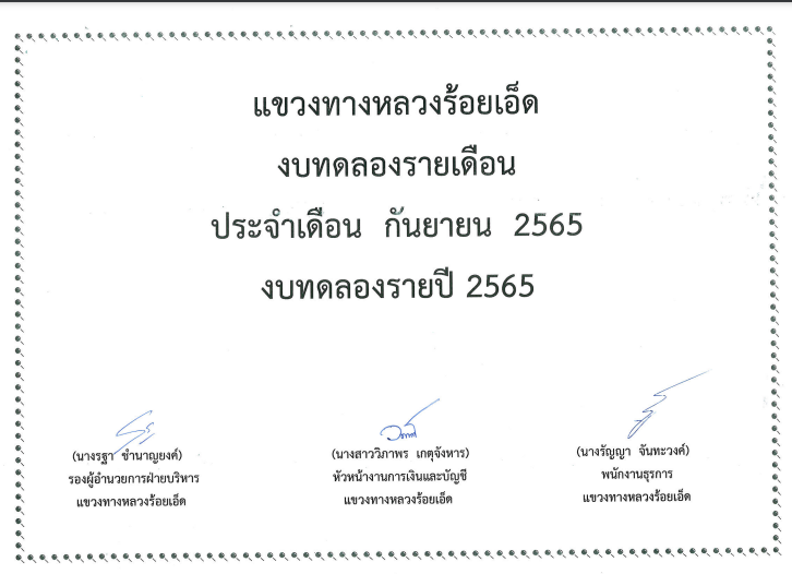 งบทดลอง เดือนกันยายน ปี 2565