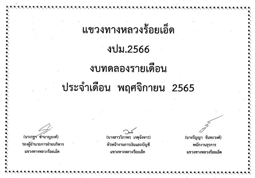งบทดลอง เดือนพฤศจิกายน ปี 2565