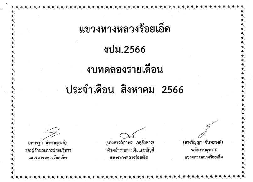 เนื้อหาเพจ : งบทดลอง เดือนสิงหาคม