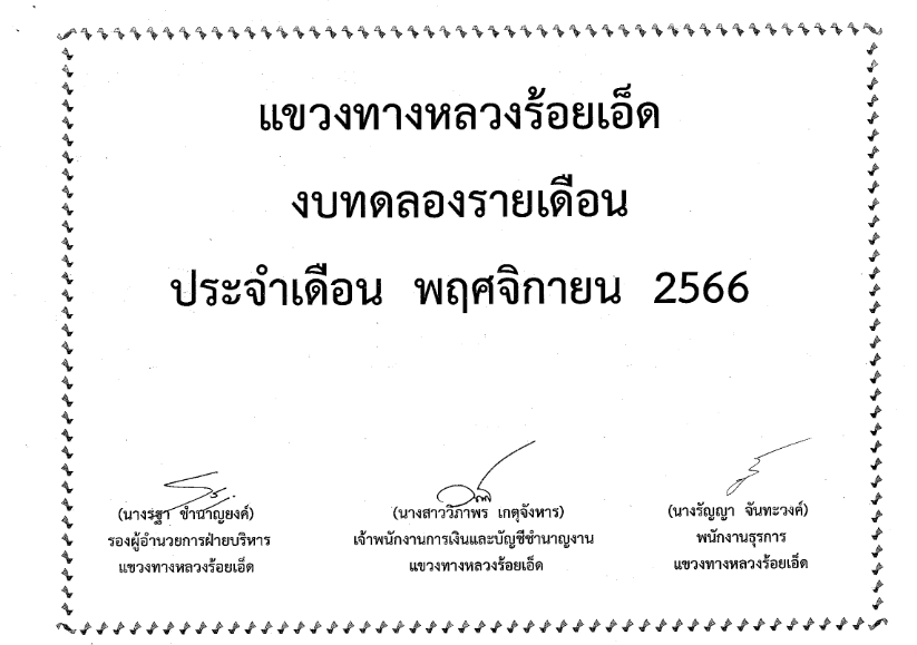 เนื้อหาเพจ : งบทดลอง เดือนพฤศจิกายน