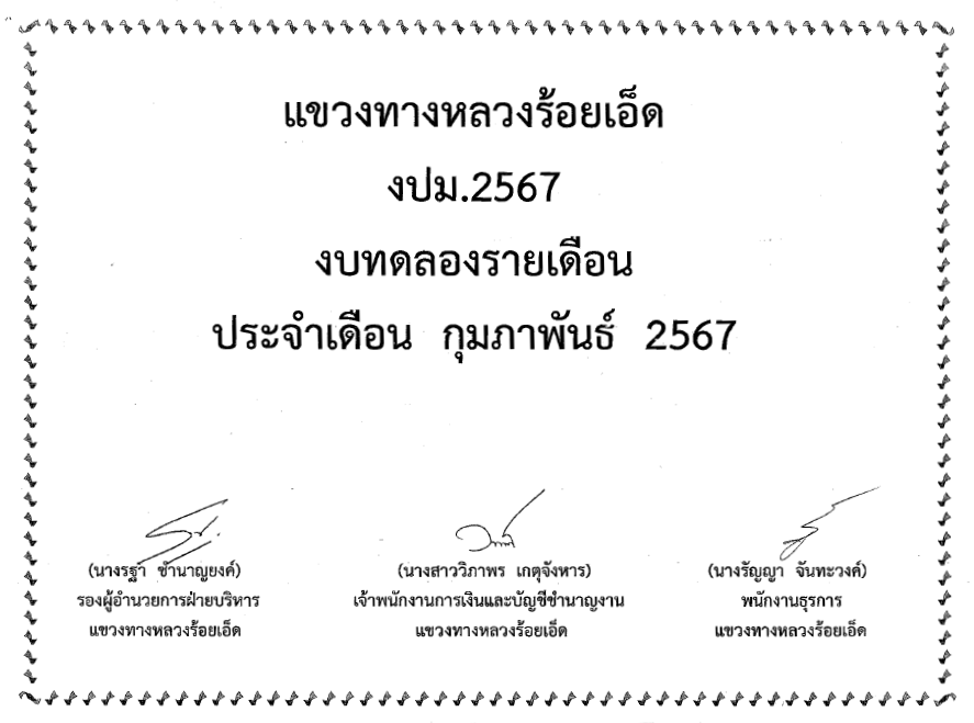 งบทดลอง เดือนกุมภาพันธ์ ปี 2567