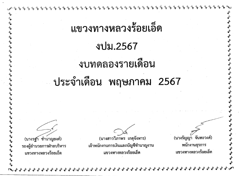 งบทดลอง เดือนพฤษภาคม ปี 2567