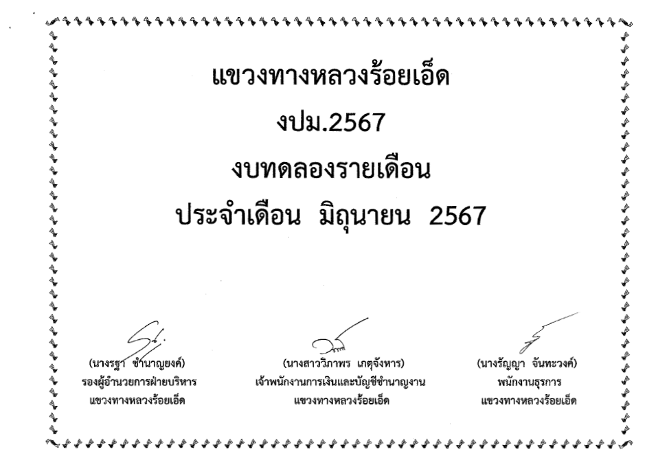 งบทดลอง เดือนมิถุนายน ปี 2567