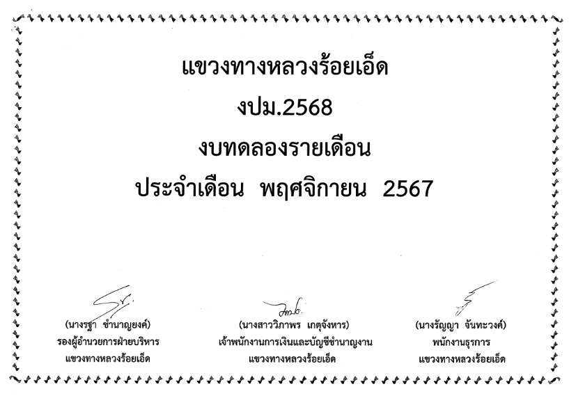 งบทดลอง เดือนพฤศจิกายน ปี 2567