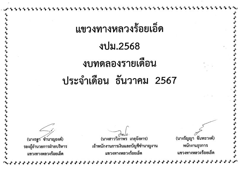 เนื้อหาเพจ : งบทดลอง เดือนธันวาคม