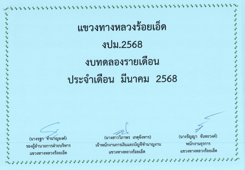 เนื้อหาเพจ : งบทดลอง เดือนมีนาคม