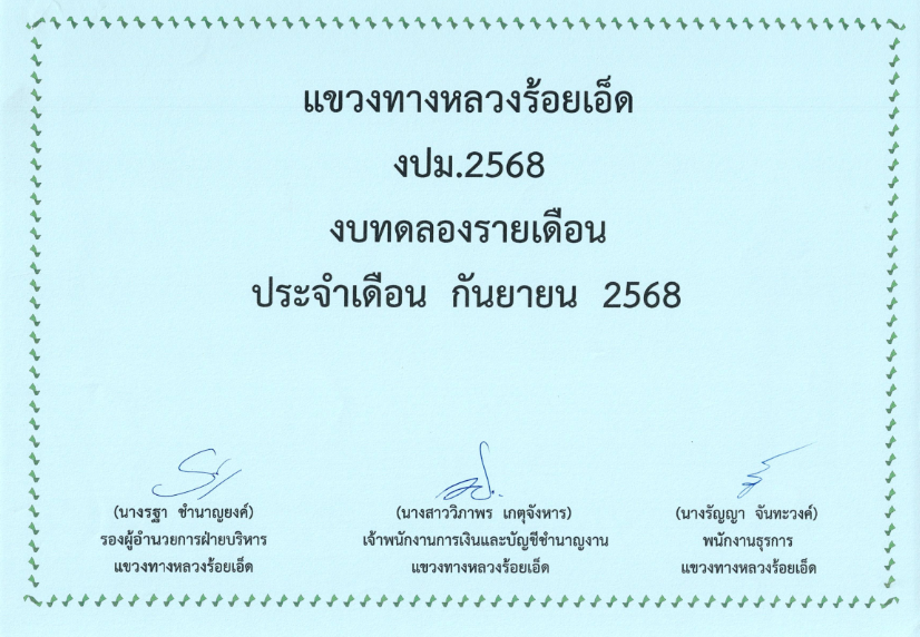 เนื้อหาเพจ : งบทดลอง เดือนกันยายน