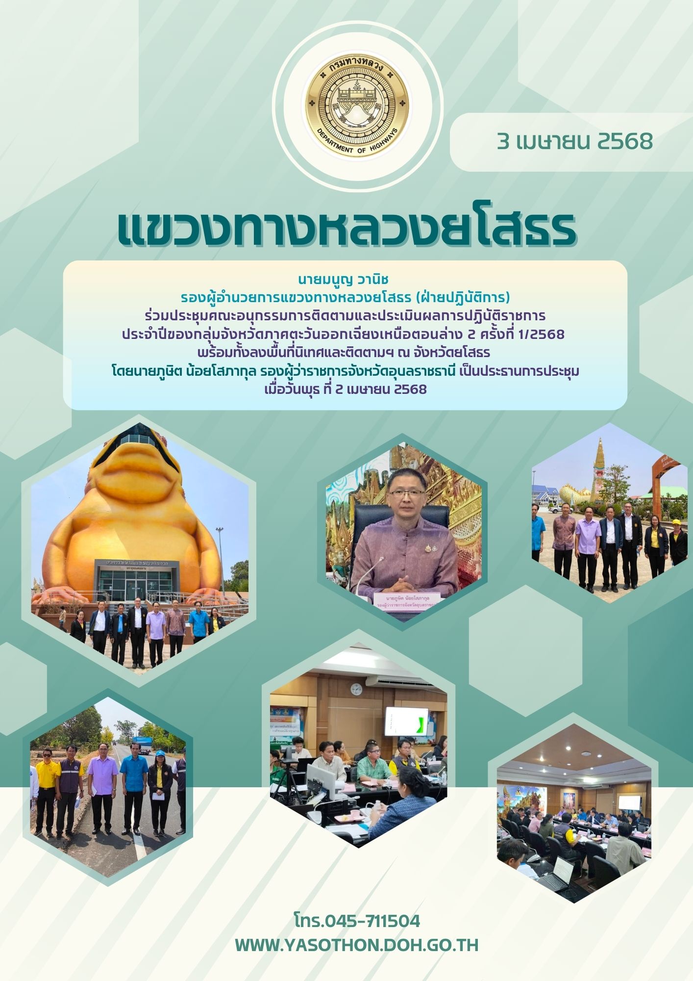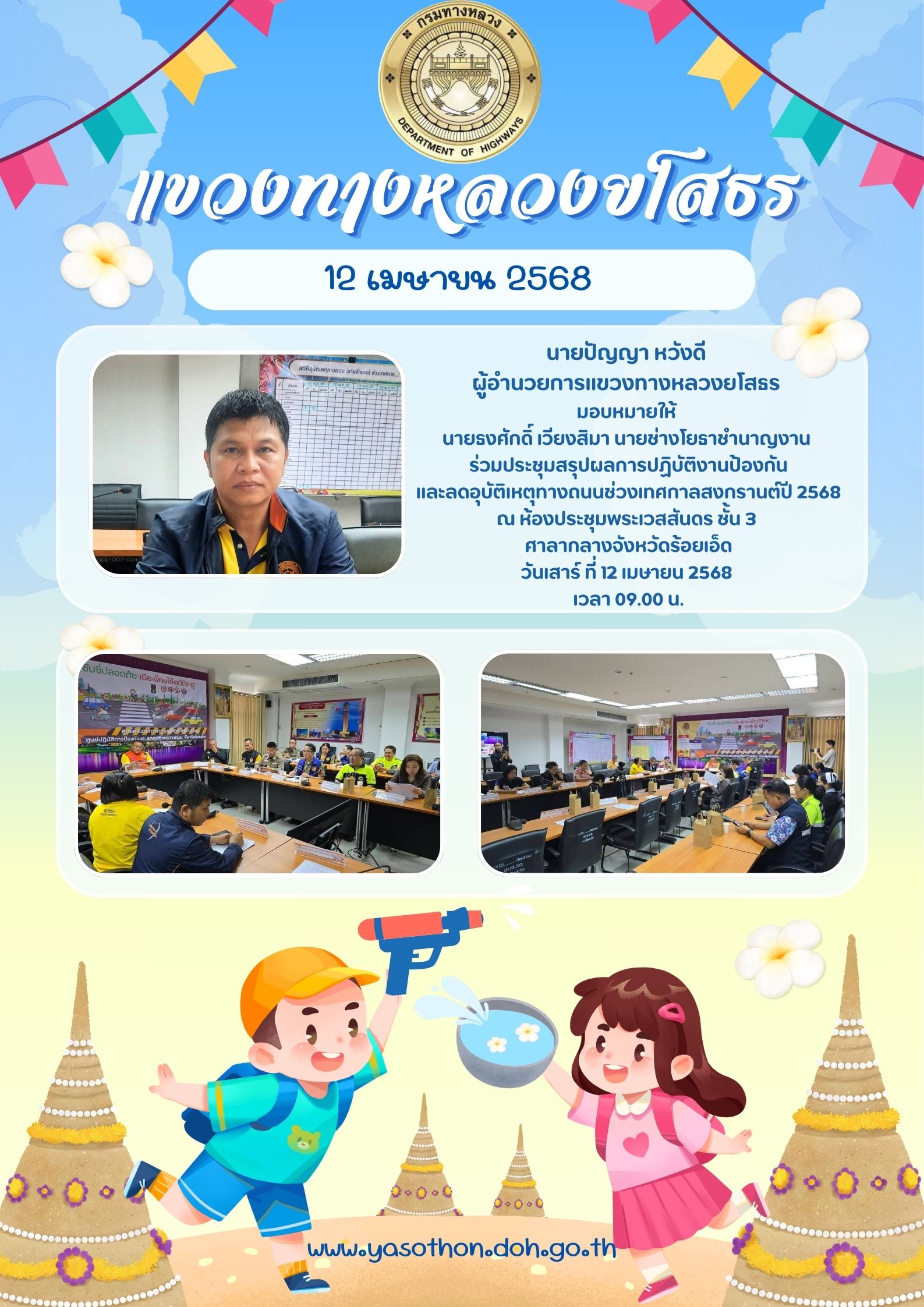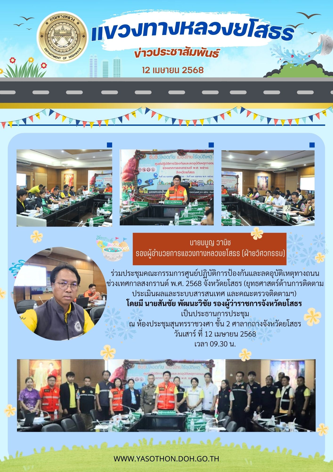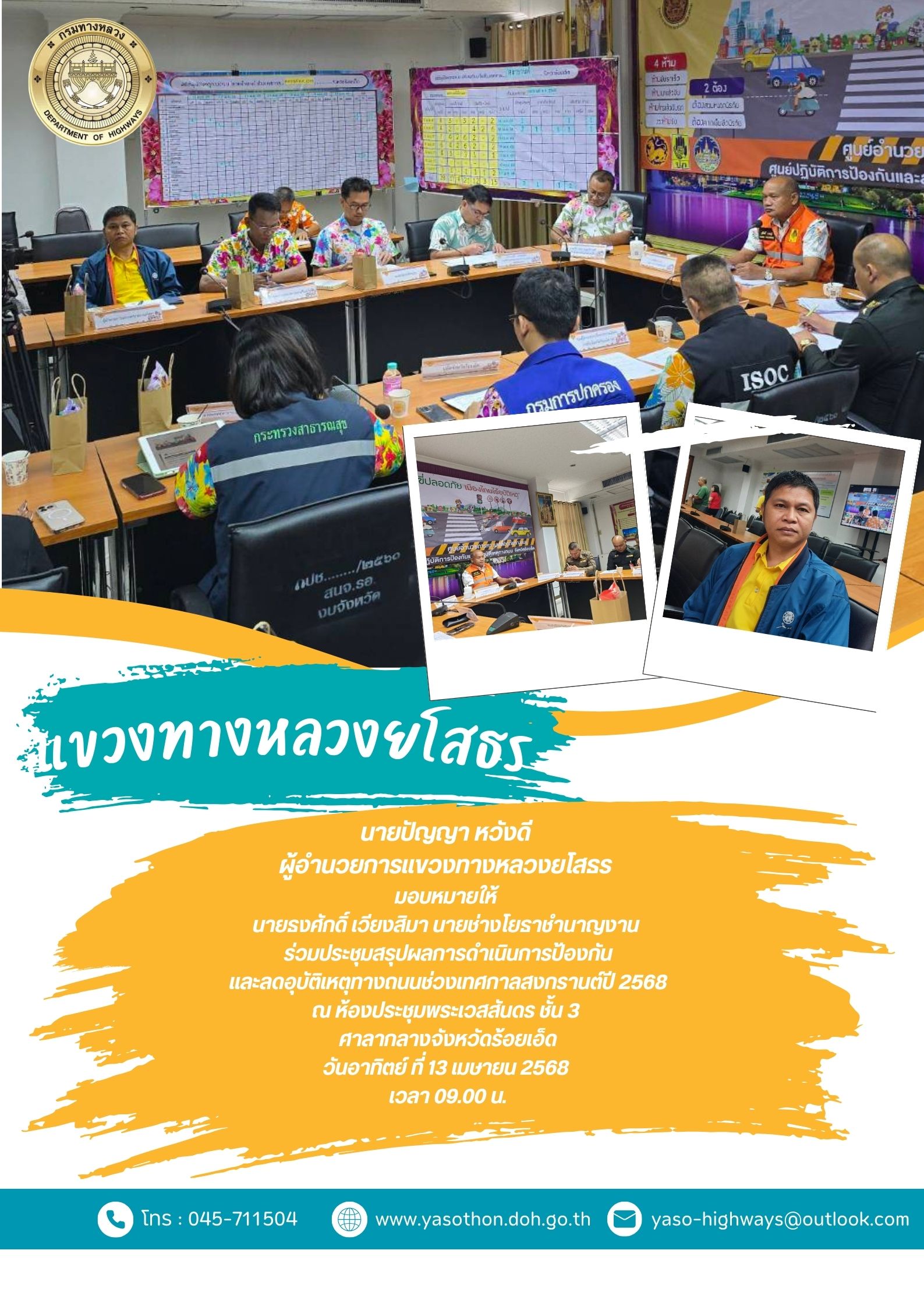 ประชุมคณะกรรมการศูนย์ปฎิบัติการป้องกันและลดอุบัติเหตุทางถนน ช่วงเทศกาลสงกรานต์ พ.ศ.2568 จังหวัดยโสธร (ยุทธศาสตร์ด้านการติดตามประเมินผลและระบบสารสนเทศ และคณะตรวจติดตามฯ)