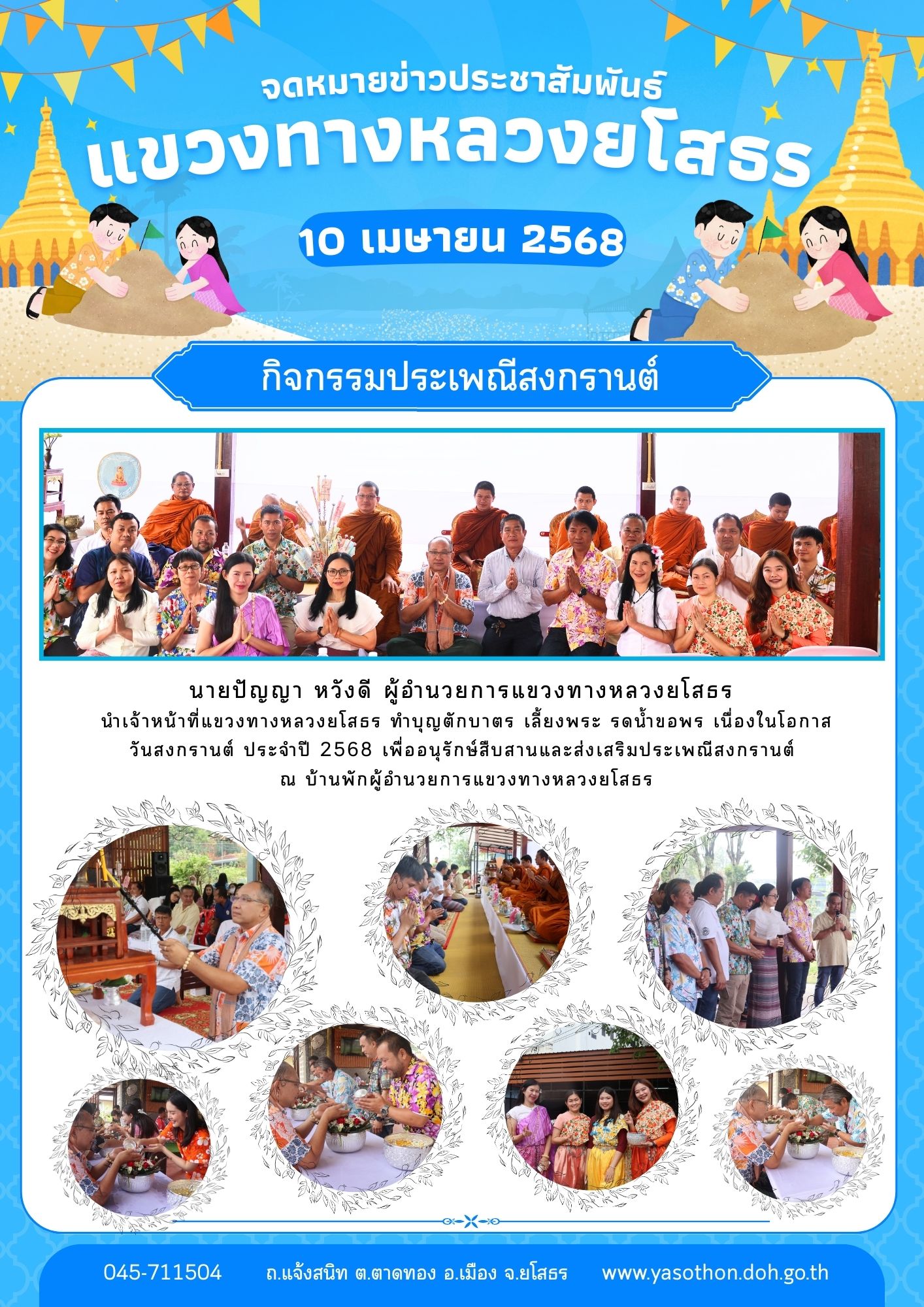 กิจกรรมทำบุญตักบาตร เลี้ยงพระ รดน้ำขอพร เนื่องในโอกาสวันสงกรานต์ ประจำปี 2568