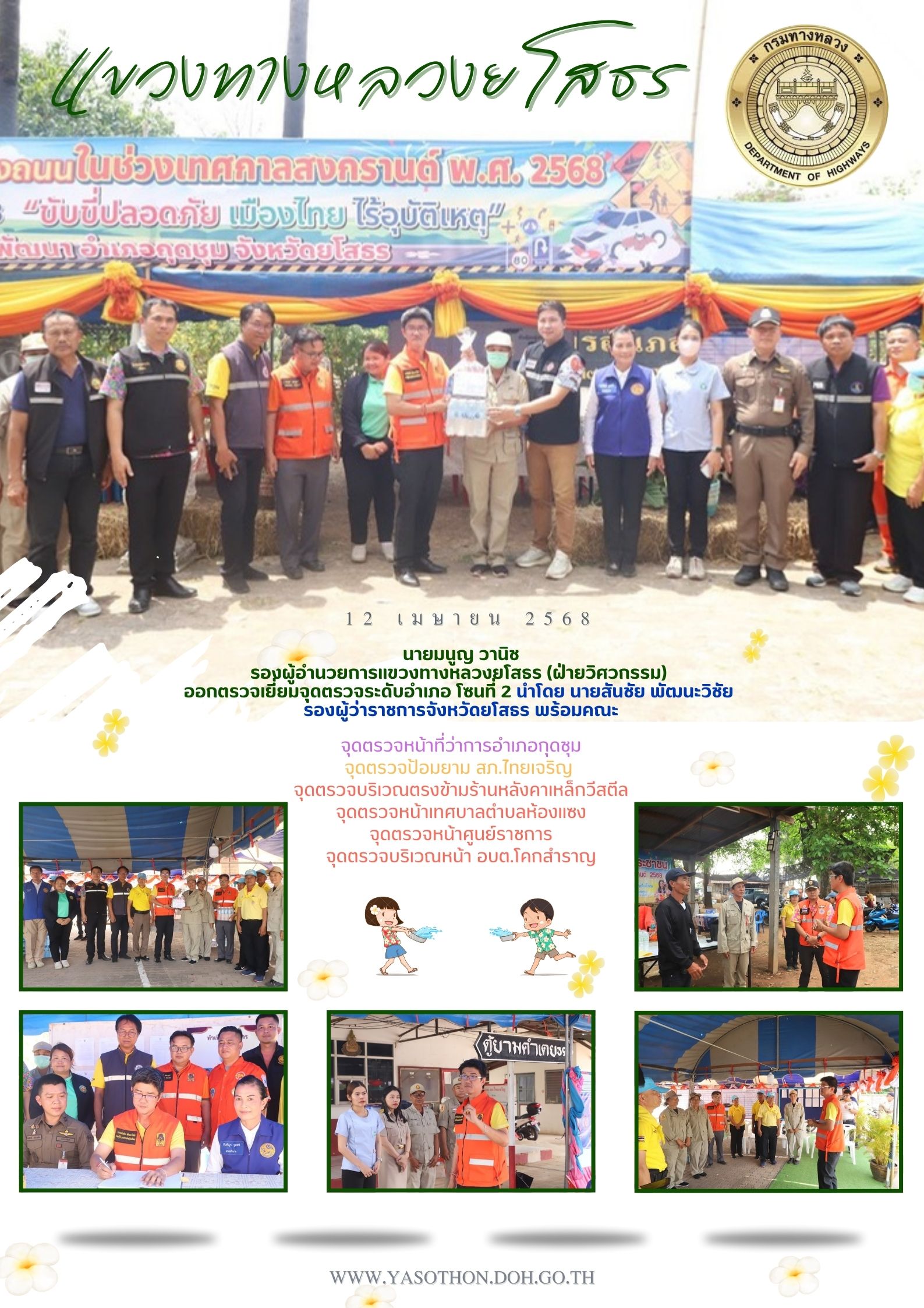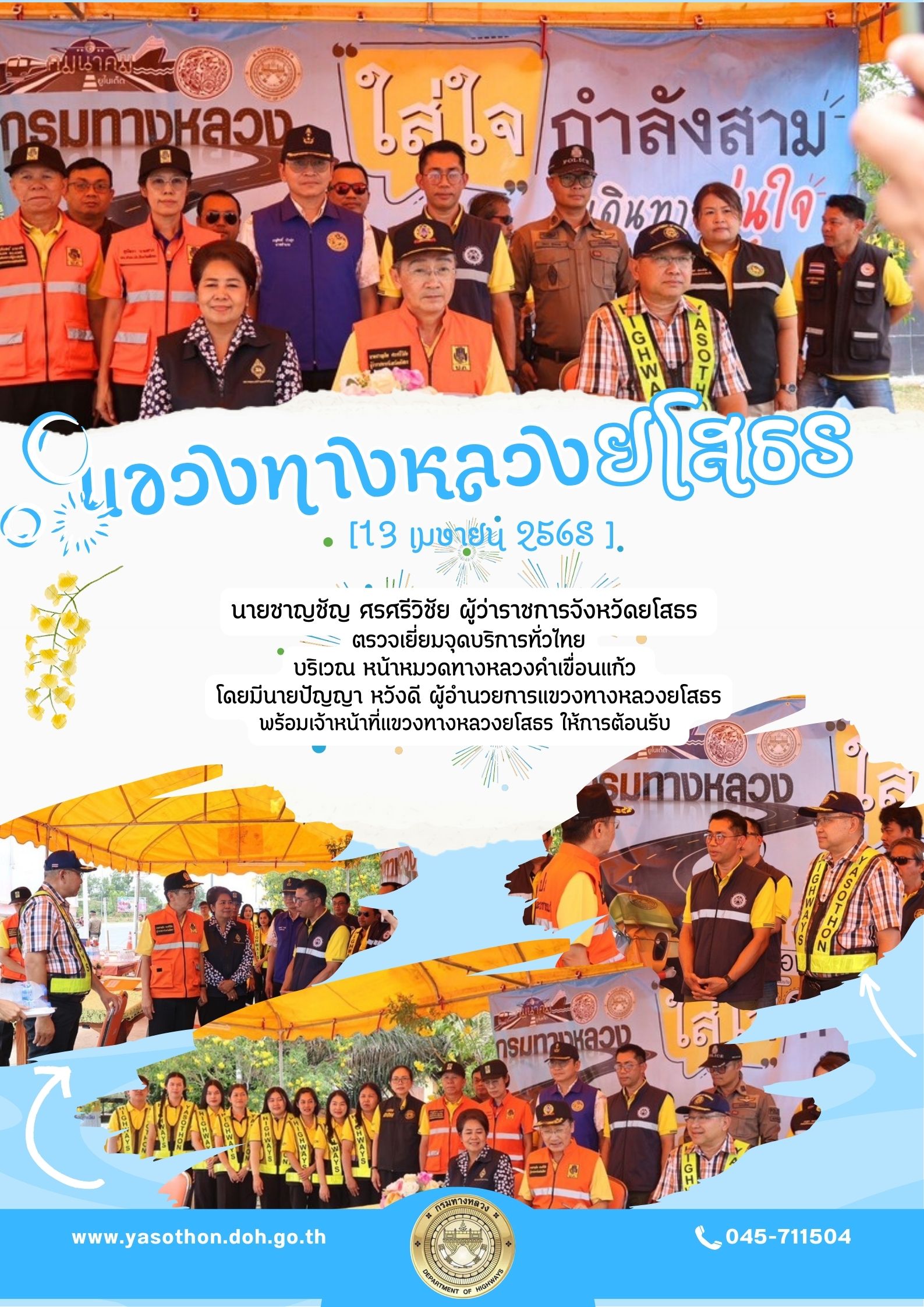 ร่วมพิธีเปิดศูนย์ปฎิบัติการป้องกันและลดอุบัติเหตุทางถนนช่วงเทศกาลสงกรานต์ พ.ศ. 2568 จังหวัดยโสธร และกิจกรรมรณรงค์ "ขับขี่ปลอดภัย เมืองไทยไร้อุบัติเหตุ"