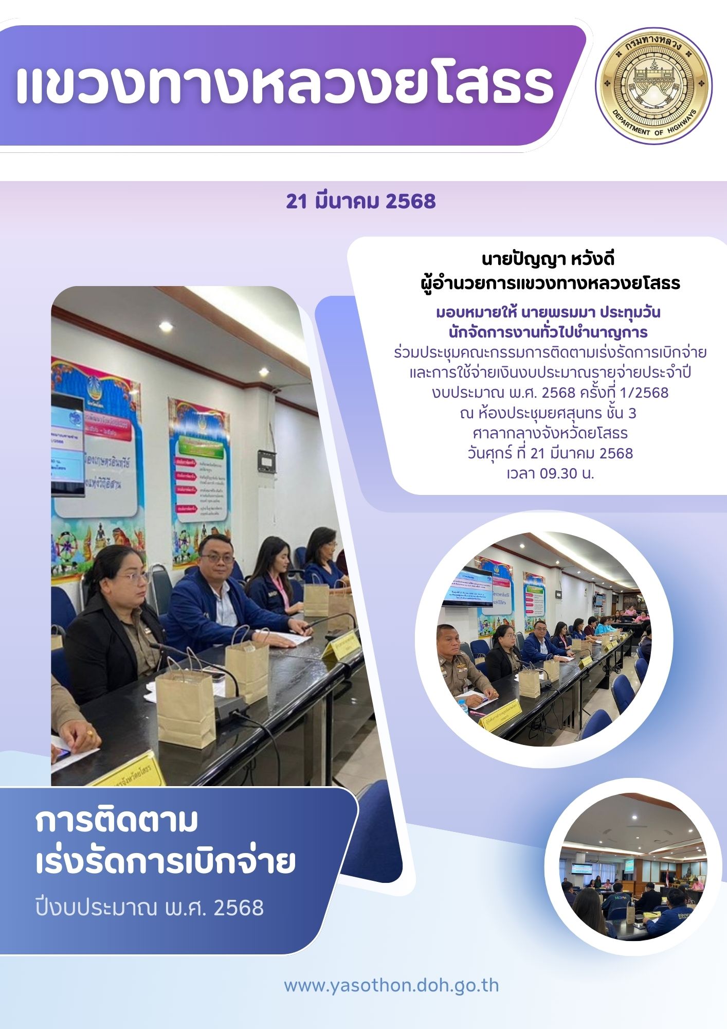 163 21/03/2568 ประชุมคณะกรรมการติดตามเร่งรัดการเบิกจ่าย และการใช้จ่ายเงินงบประมาณรายจ่ายประจำปีงบประมาณ พ.ศ. 2568 ครั้งที่ 1/2568