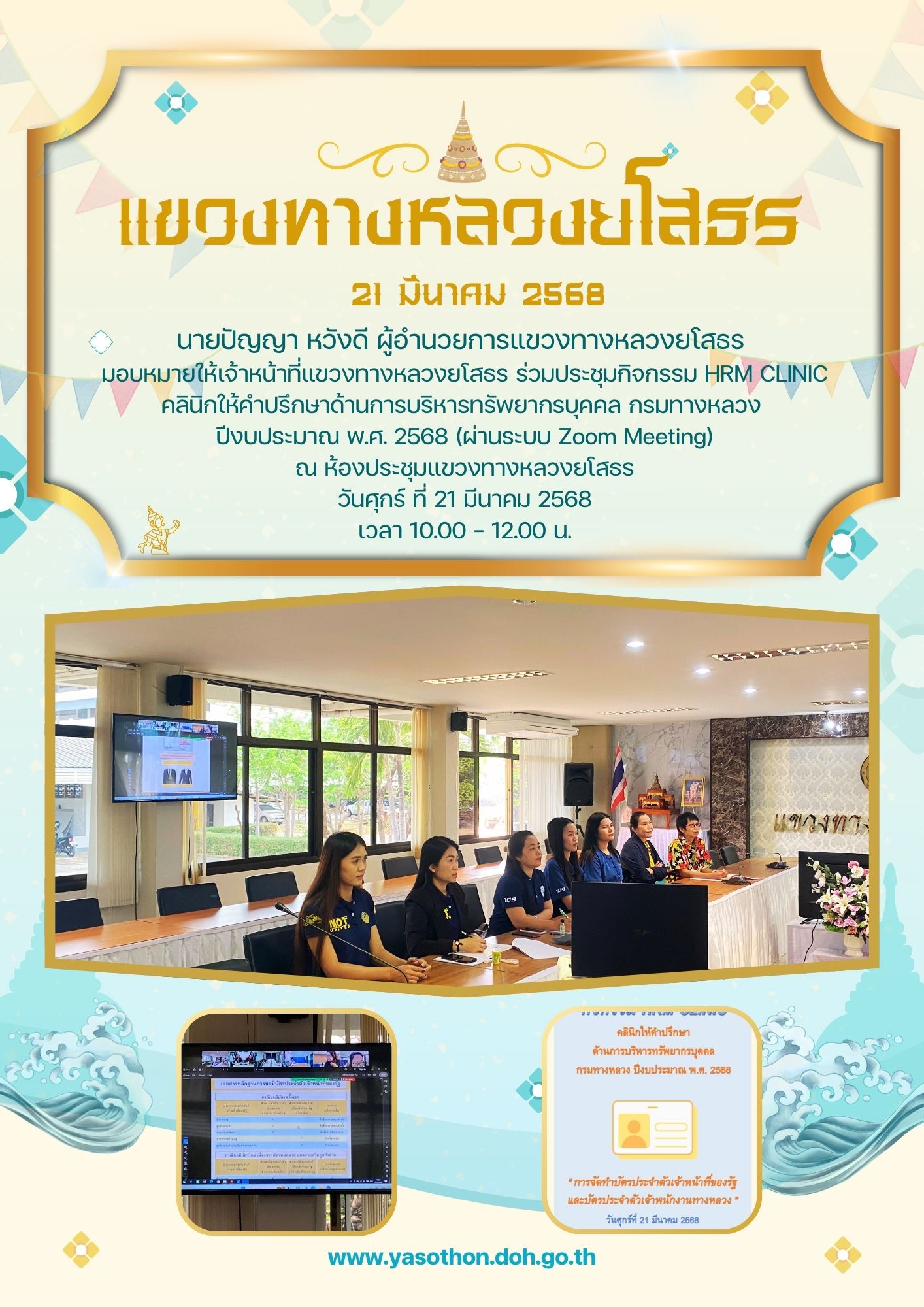 162 21/03/2568 ประชุมกิจกรรม HRM CLINIC คลินิกให้คำปรึกษาด้านการบริหารทรัพยากรบุคคล กรมทางหลวง ปึงบประมาณ พ.ศ. 2568 (ผ่านระบบ Zoom Meeting)