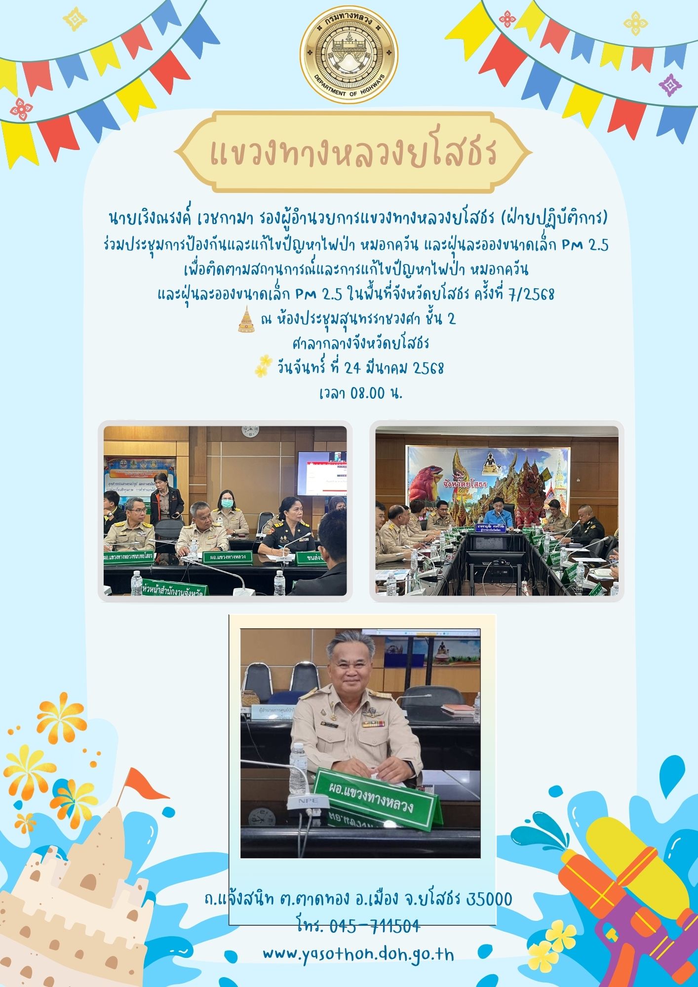 161 24/03/2568 ประชุมป้องกันและแก้ไขปัญหาไฟป่าหมอกควัน และฝุ่นละอองขนาดเล็ก PM 2.5 ในพื้นที่จังหวัดยโสธร