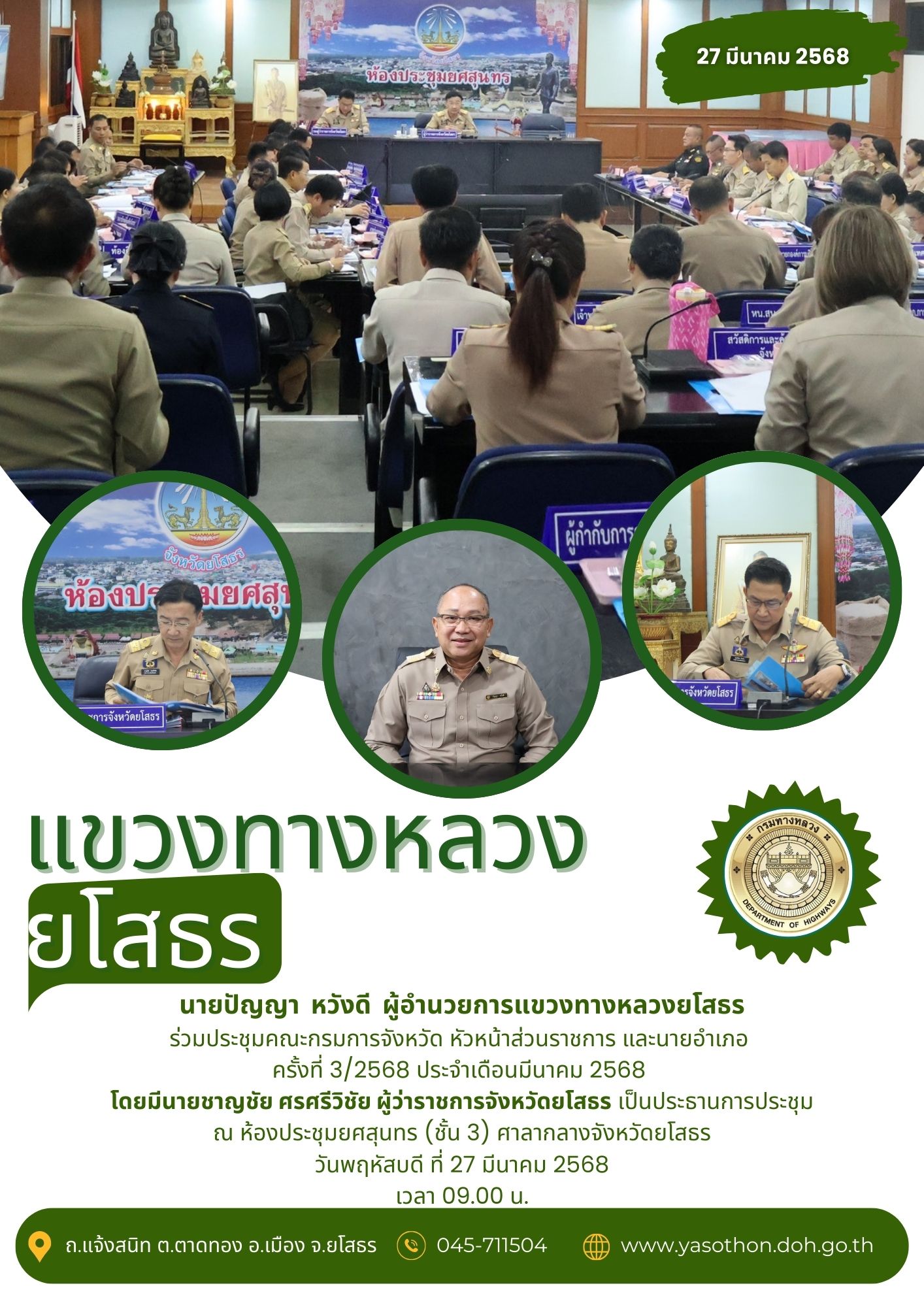 158 27/03/2568 ร่วมประชุมคณะกรมการจังหวัด หัวหน้าส่วนราชการ และนายอำเภอ จังหวัดยโสธร ครั้งที่ 3/2568 ประจำเดือนกุมภาพันธ์ 2568