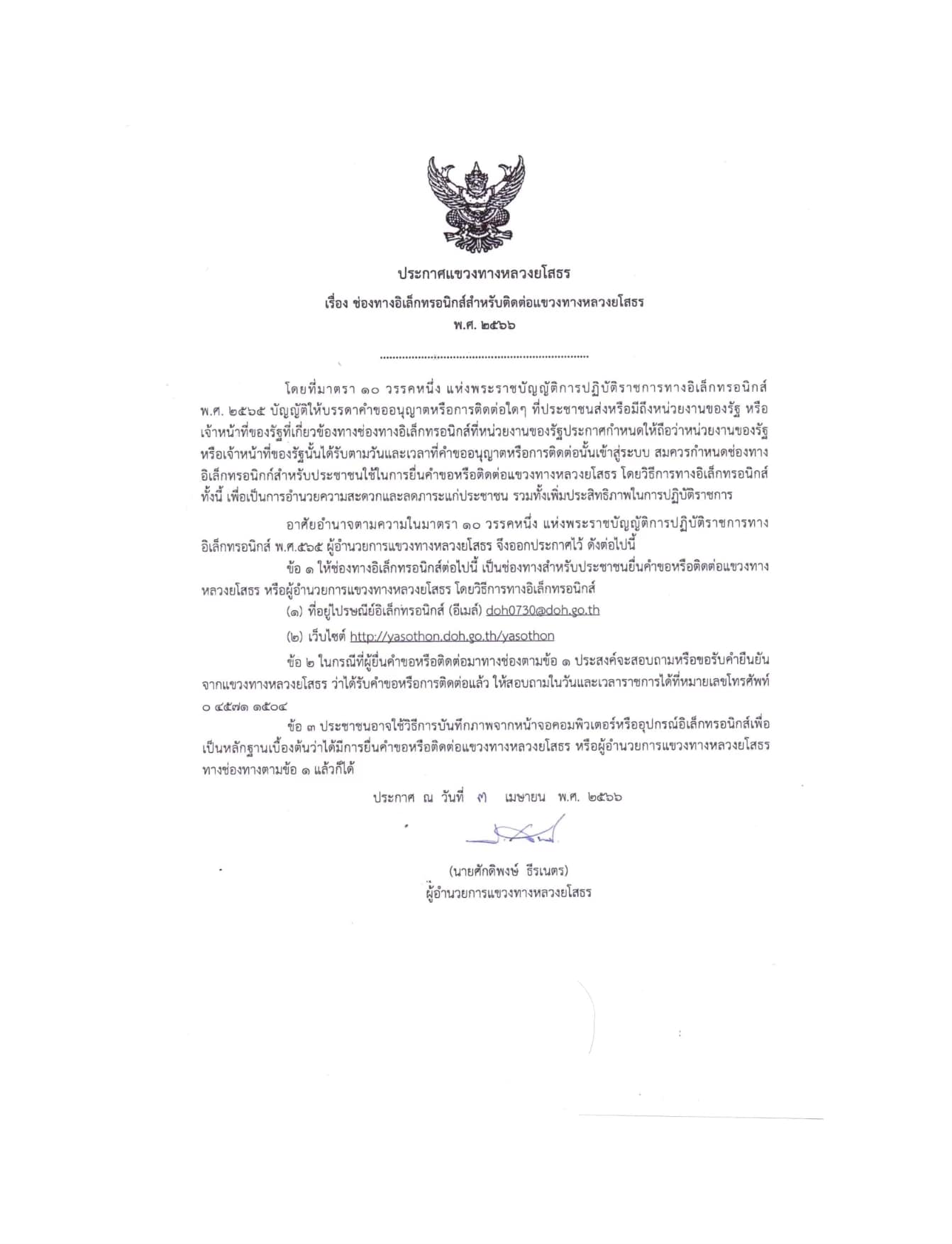 ช่องทางอิเล็กทรอนิกส์สำหรับติดต่อแขวงทางหลวงยโสธร