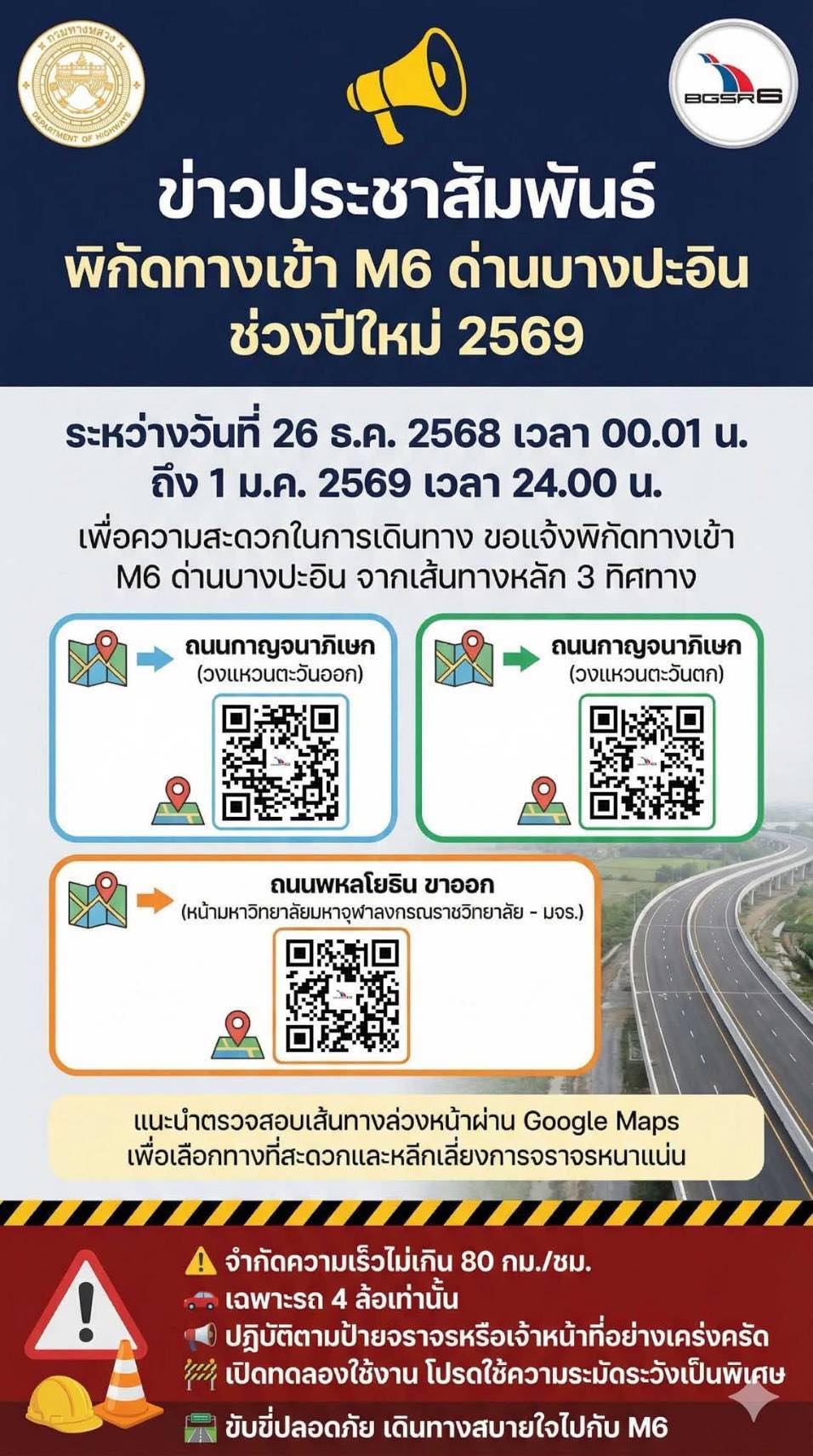 พิกัดทางเข้า M6 ด่านบางประอิน ช่วงปีใหม่ 2569