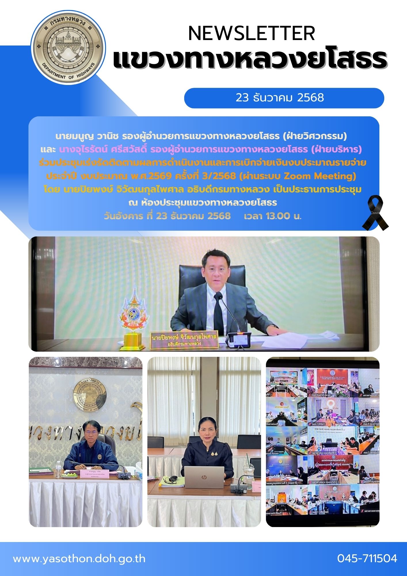 ร่วมประชุมผู้บริหารกรมทางหลวง ประจำเดือนธันวาคม 2568 (ผ่านระบบ Zoom Meeting)