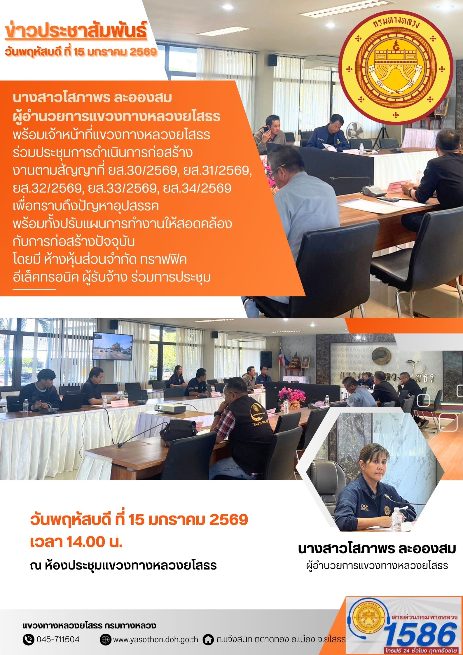 ร่วมประชุมการดำเนินการก่อสร้าง งานตามสัญญาที่ ยส.30/2569, ยส.31/2569, ยส.32/2569, ยส.33/2569, ยส.34/2569