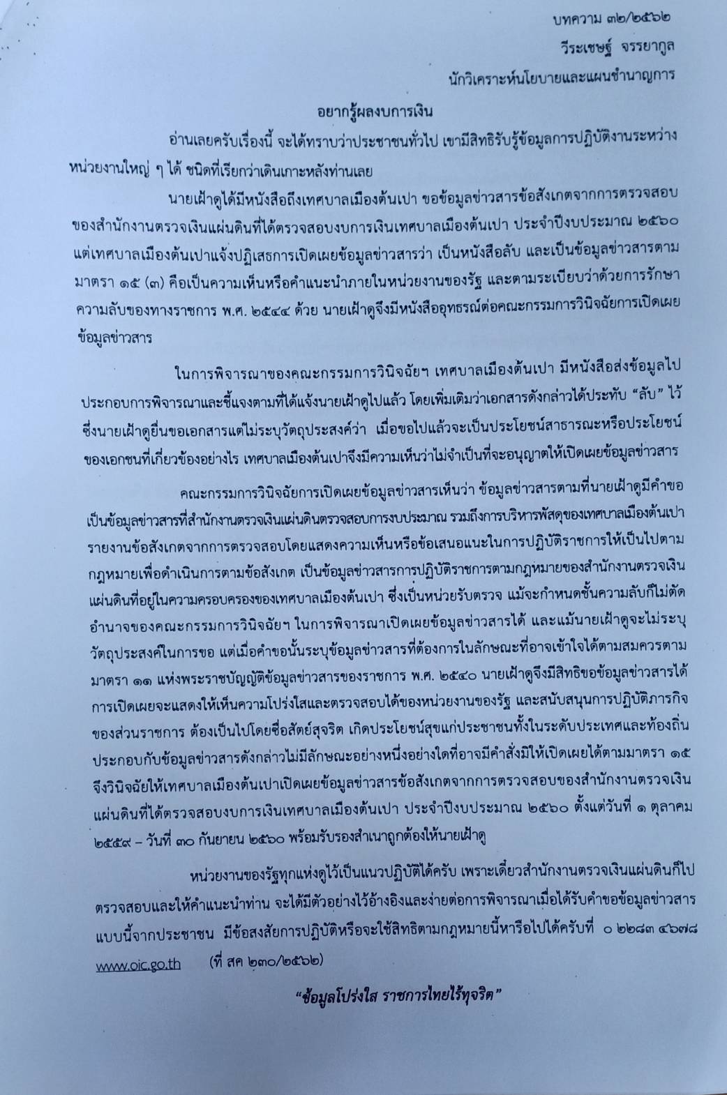 330 31/07/2562 ความรู้เกี่ยวกับพระราชบัญญัติข้อมูลข่าวสารของราชการ พ.ศ. 2540
