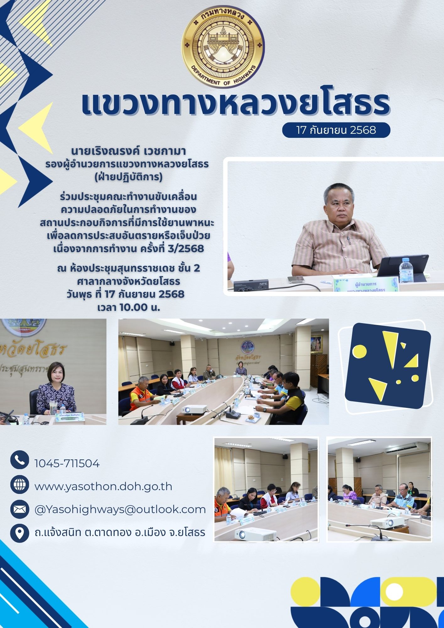 44 18/09/2568 ประชุมคณะทำงานขับเคลื่อนความปลอดภัย ในการทำงานของสถานประกอบกิจการที่มีการใช้ยานพาหนะ เพื่อลดการประสบอันตรายหรือเจ็บป่วยเนื่องจากการทำงาน ครั้งที่ 3/2568