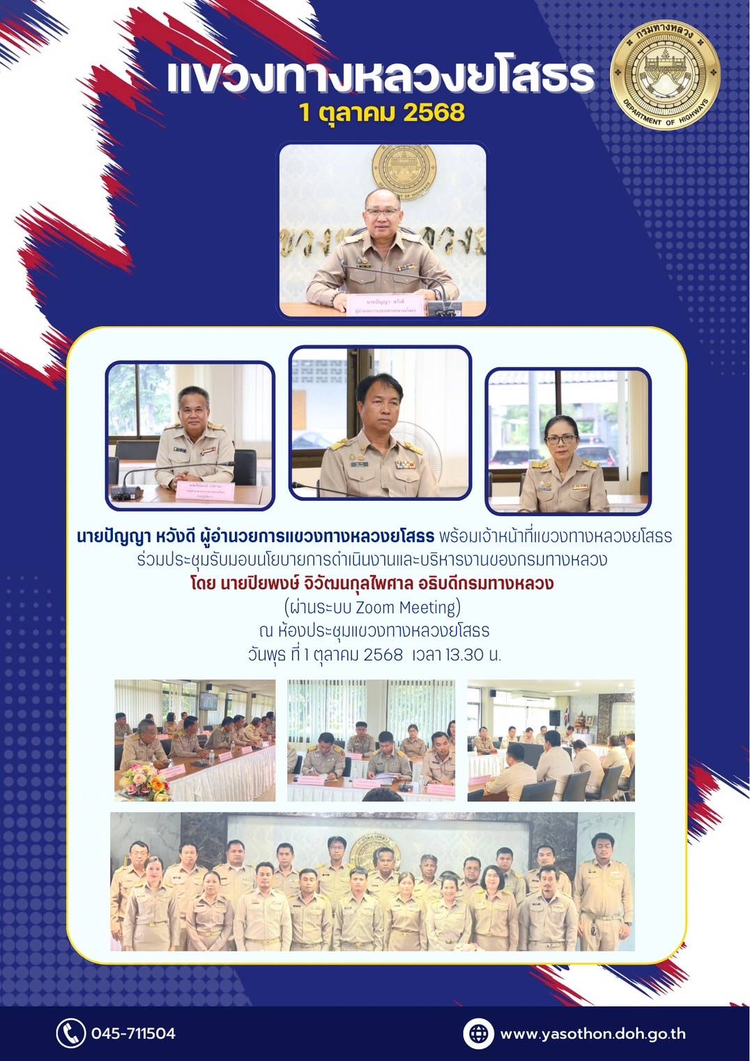 41 02/10/2568 ประชุมรับมอบนโยบายการดำเนินงานและบริหารงานของกรมทางหลวง