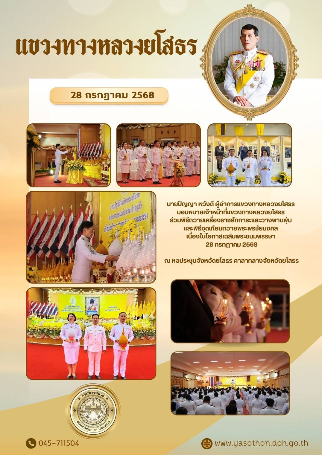 ร่วมพิธีถวายเครื่องราชสักการะและวางพานพุ่ม และพิธีจุดเทียนถวายพระพรชัยมงคล เนื่องในโอกาสเฉลิมพระชนมพรรษา 28 กรกฎาคม 2568