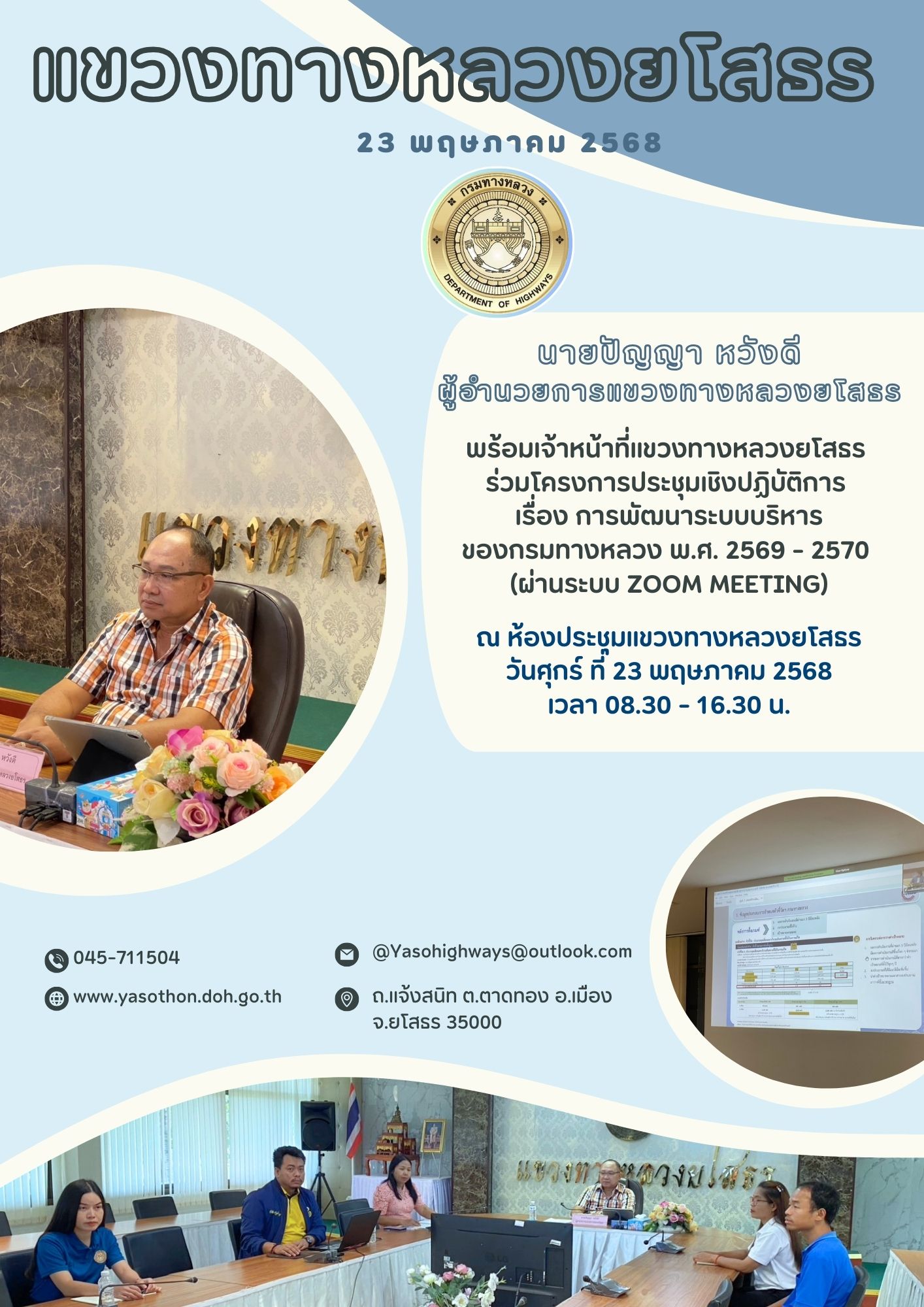 ประชุมคณะอนุกรรมการพิจารณากำหนดและปรับปรุงเงื่อนไขในใบอนุญาตประกอบการขนส่งไม่ประจำทาง ด้วยรถที่ใช้ในการขนส่งสัตว์หรือสิ่งของประจำจังหวัดยโสธร ครั้งที่ 4/2568