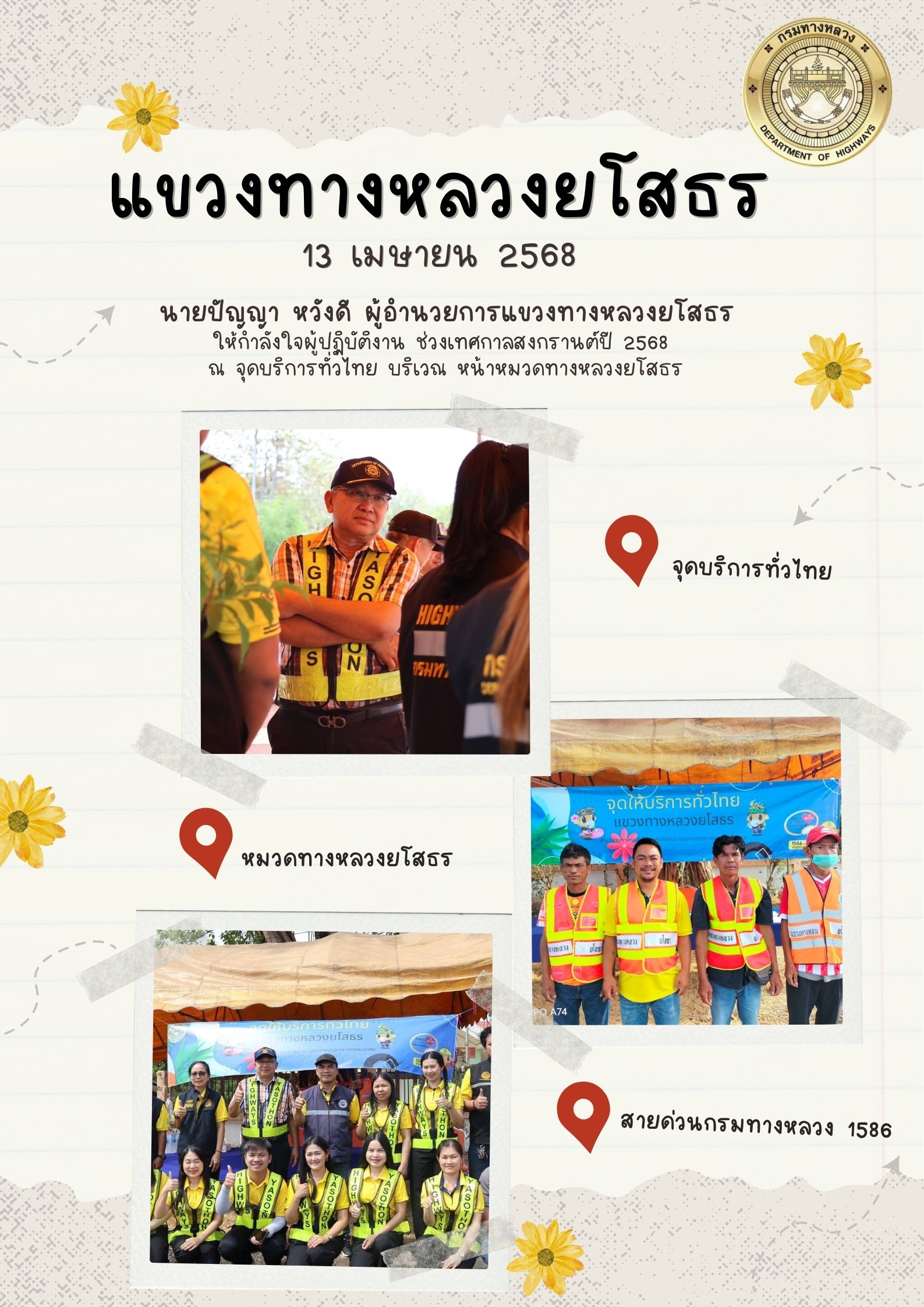 นายปัญญา หวังดี ผู้อำนวยการแขวงทางหลวงยโสธร ให้กำลังใจผู้ปฏิบัติงาน ช่วงเทศกาลสงกรานต์ปี 2568