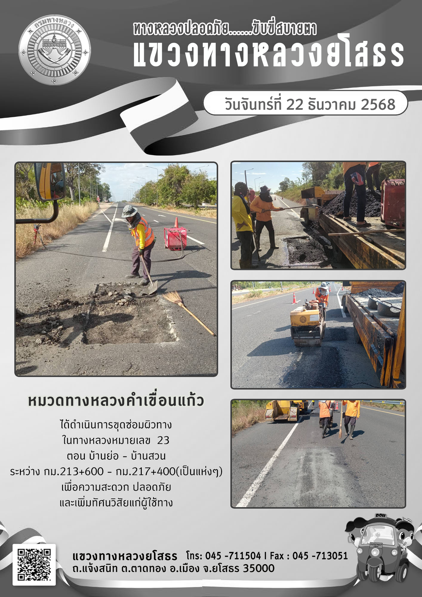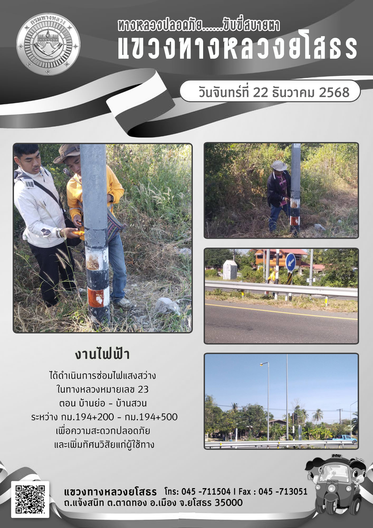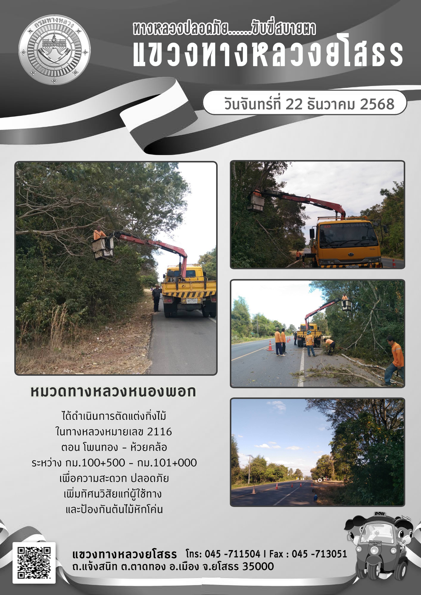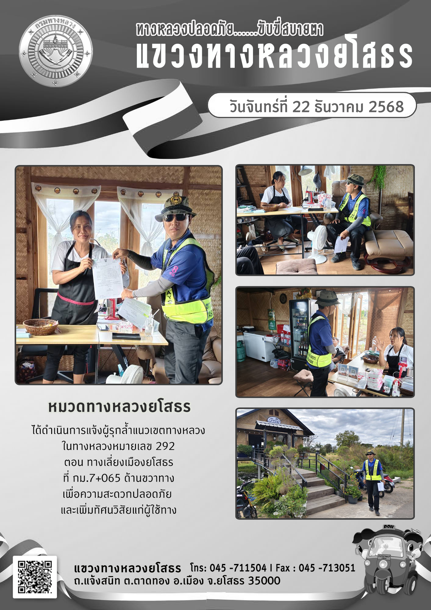ข้อมูลภาพกิจกรรม : ทางหลวงปลอดภัย ขับขี่สบายตา วันที่ 22 ธันวาคม 2568