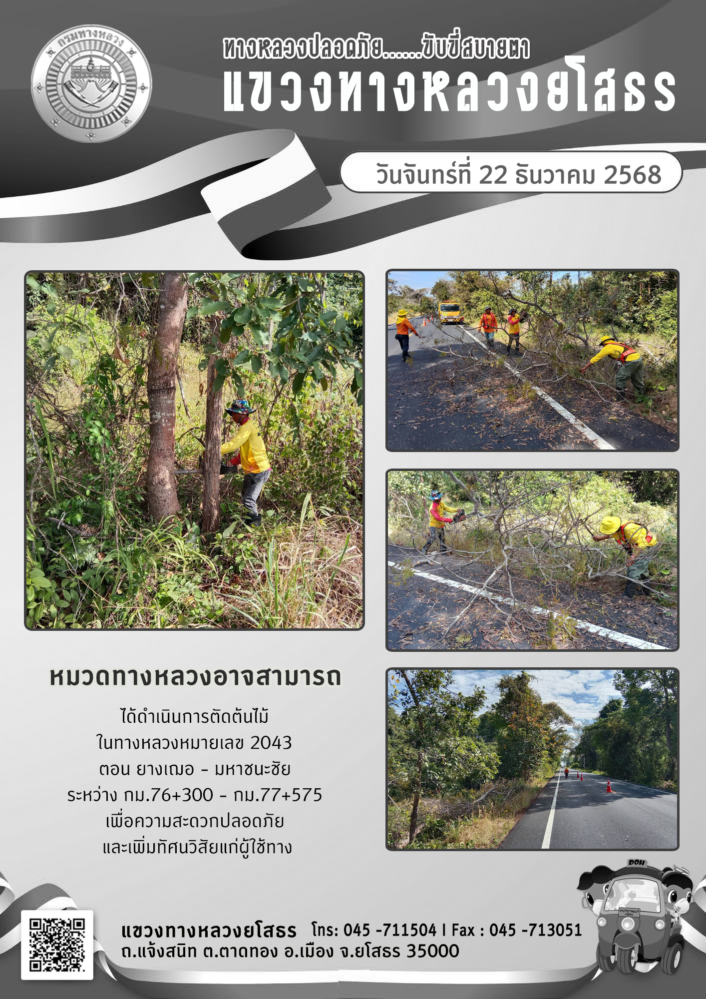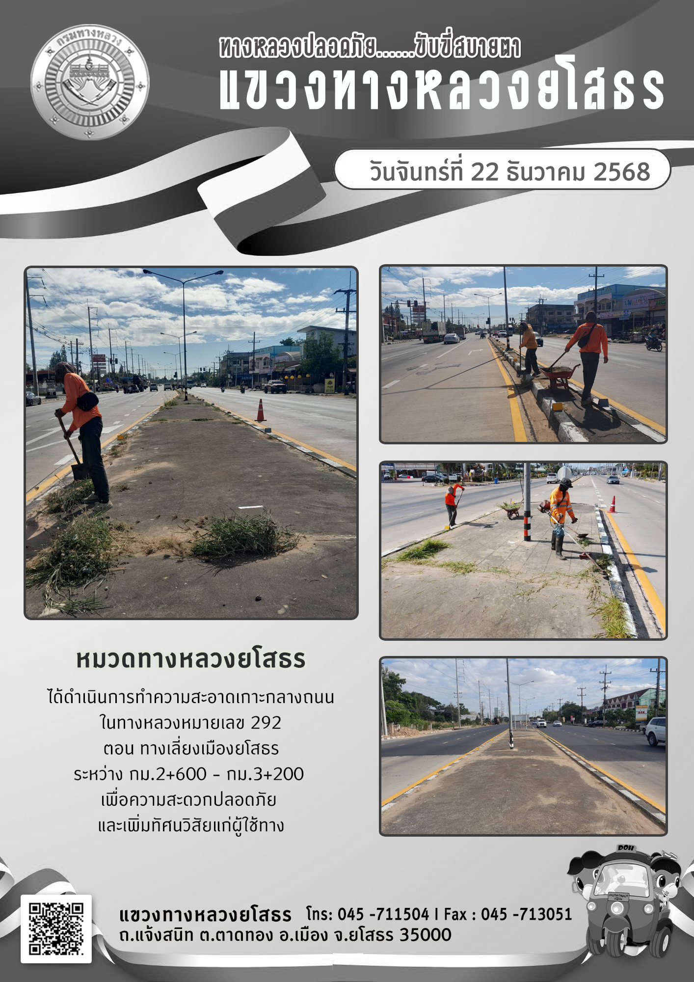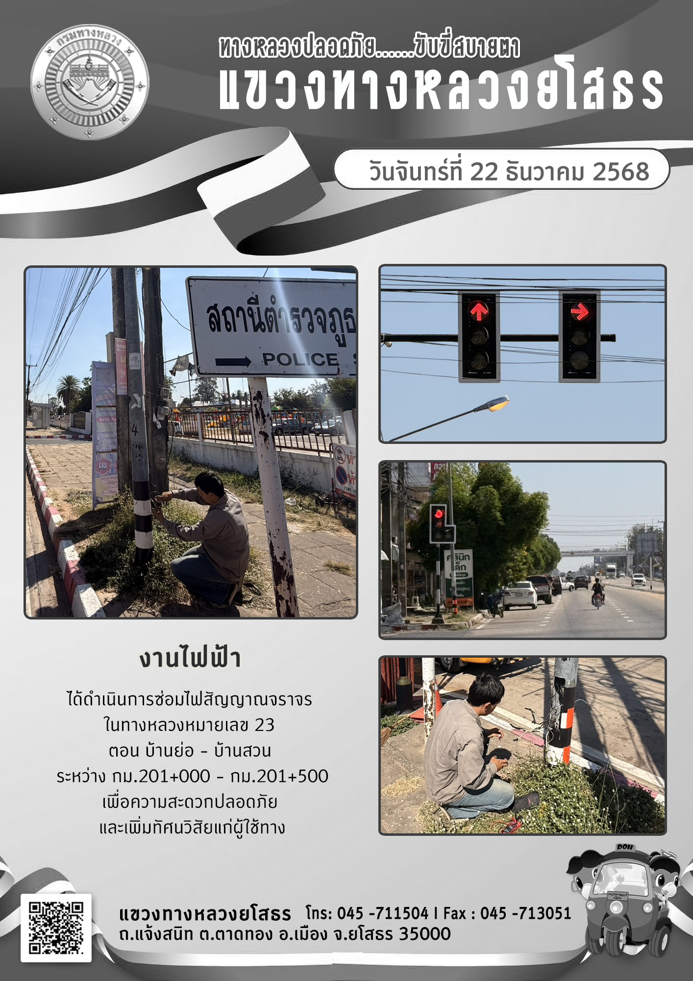 ข้อมูลภาพกิจกรรม : ทางหลวงปลอดภัย ขับขี่สบายตา วันที่ 22 ธันวาคม 2568