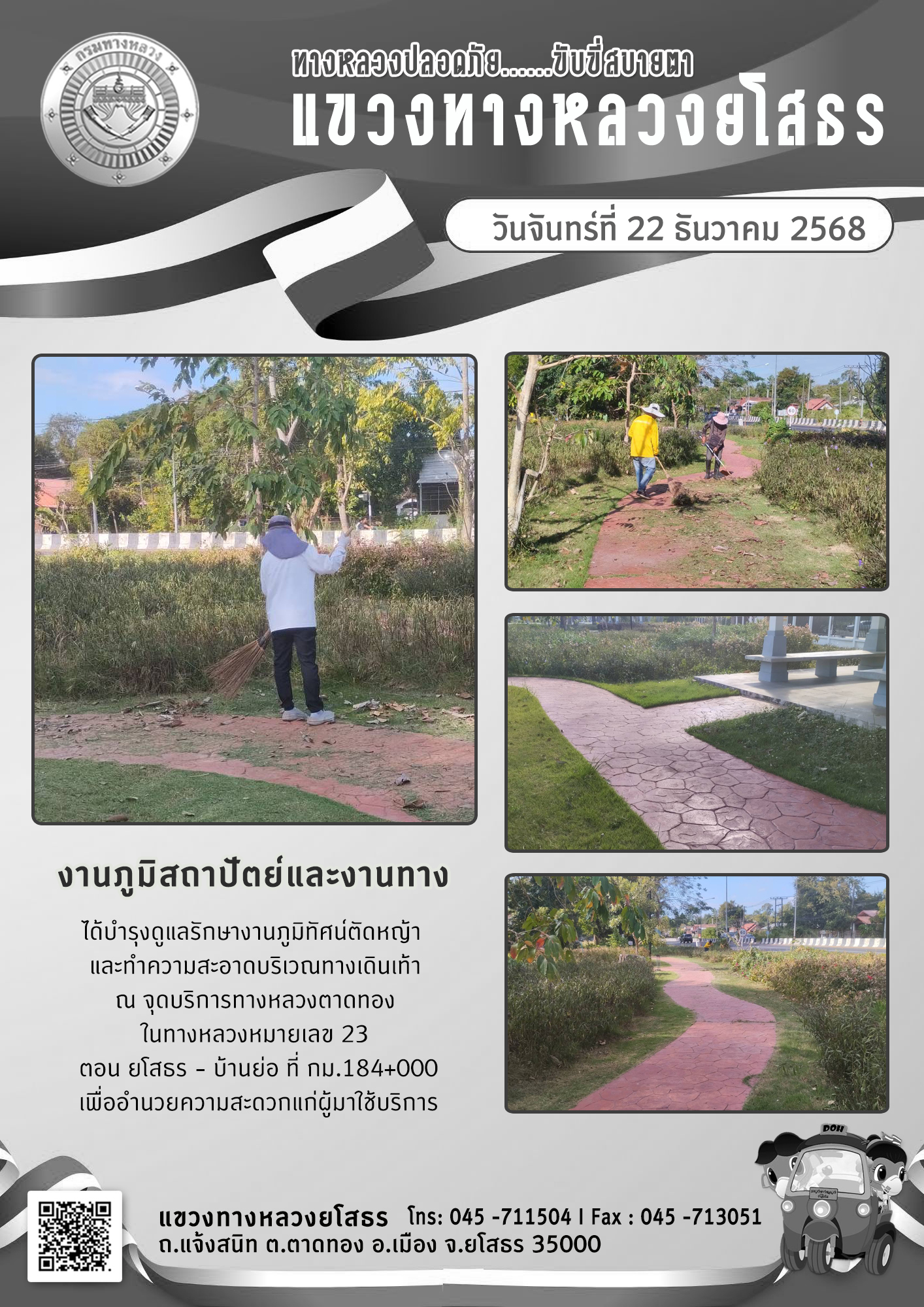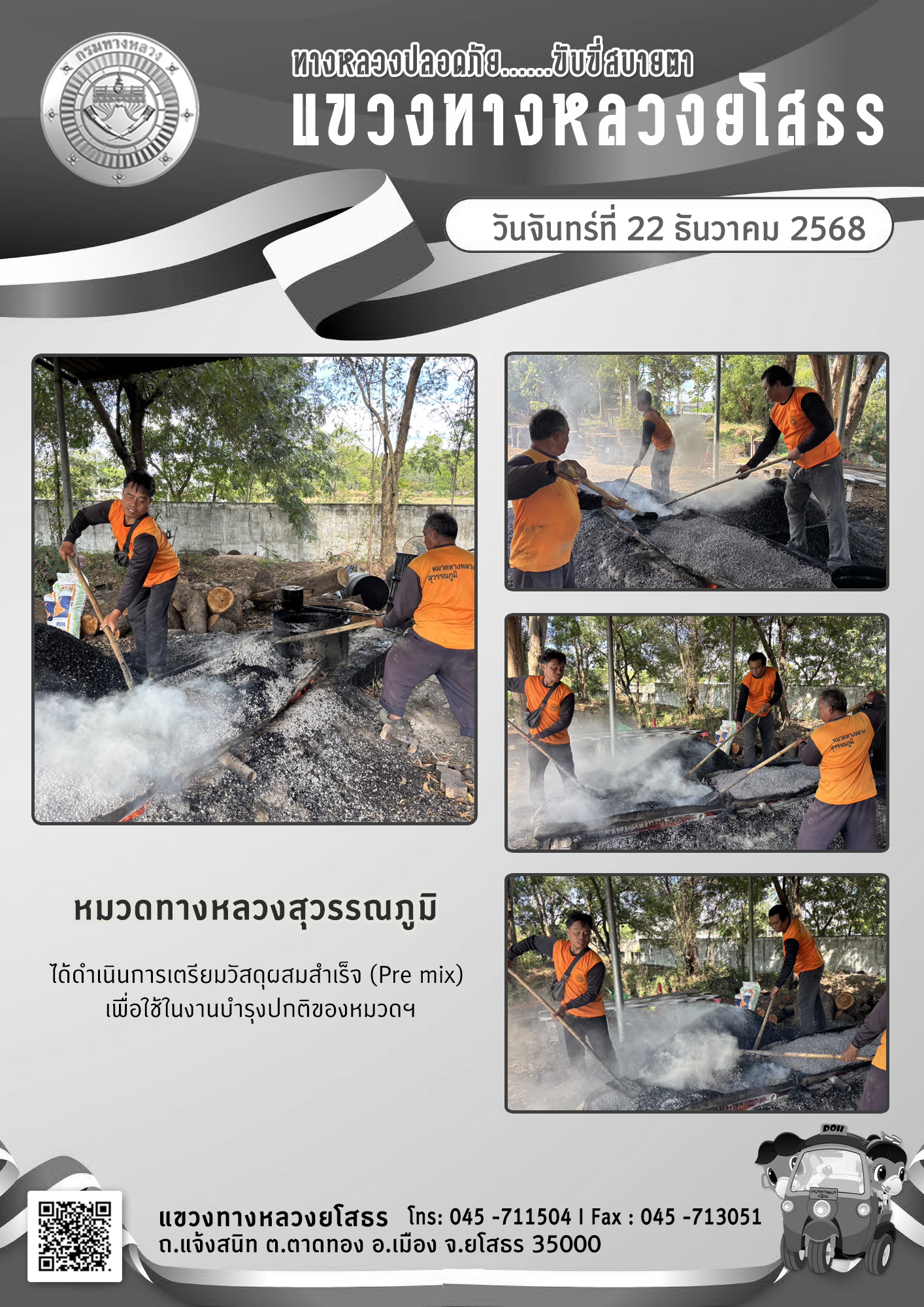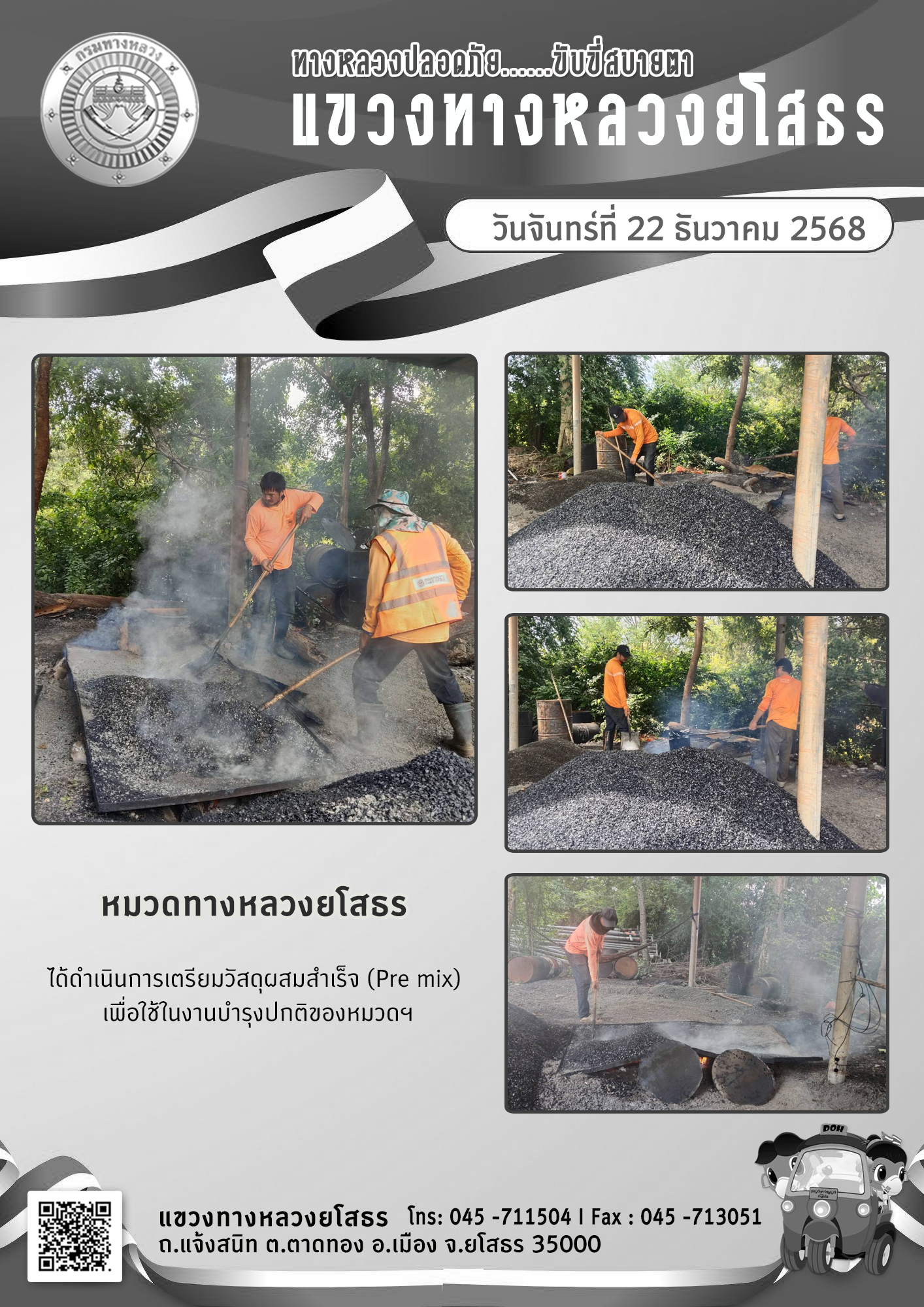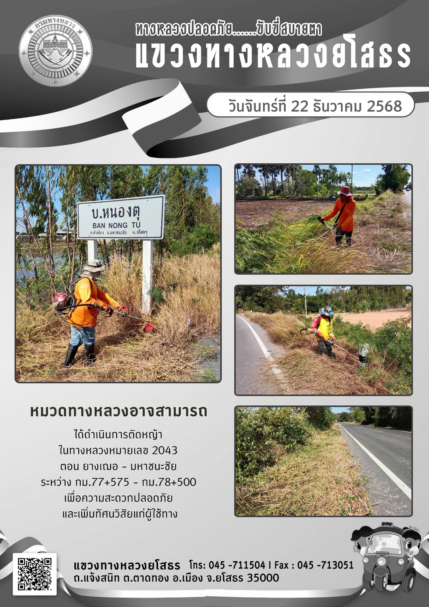 ข้อมูลภาพกิจกรรม : ทางหลวงปลอดภัย ขับขี่สบายตา วันที่ 22 ธันวาคม 2568