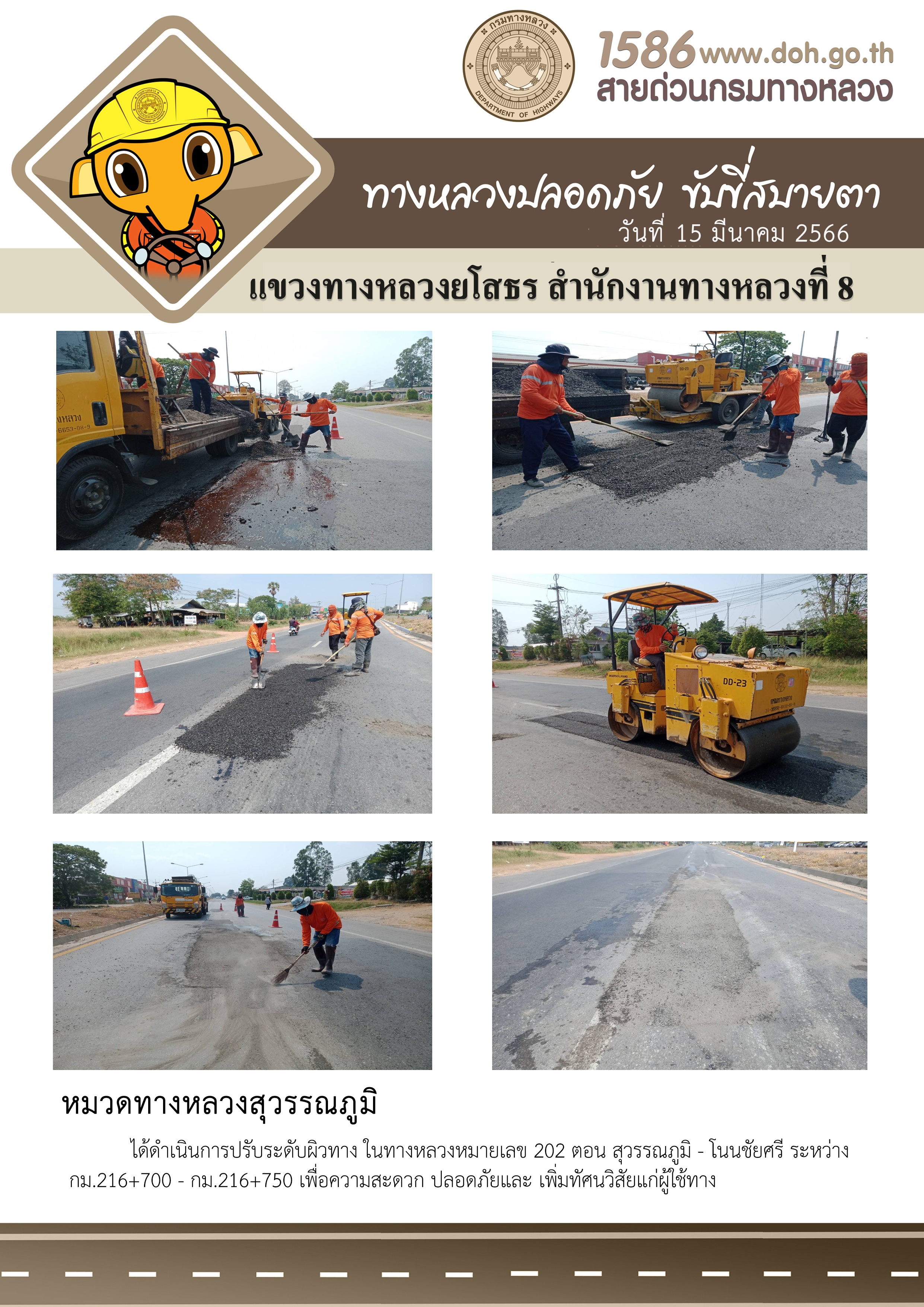 ทางหลวงปลอดภัย ขับขี่สบายตา วันที่ 15 มีนาคม 2566