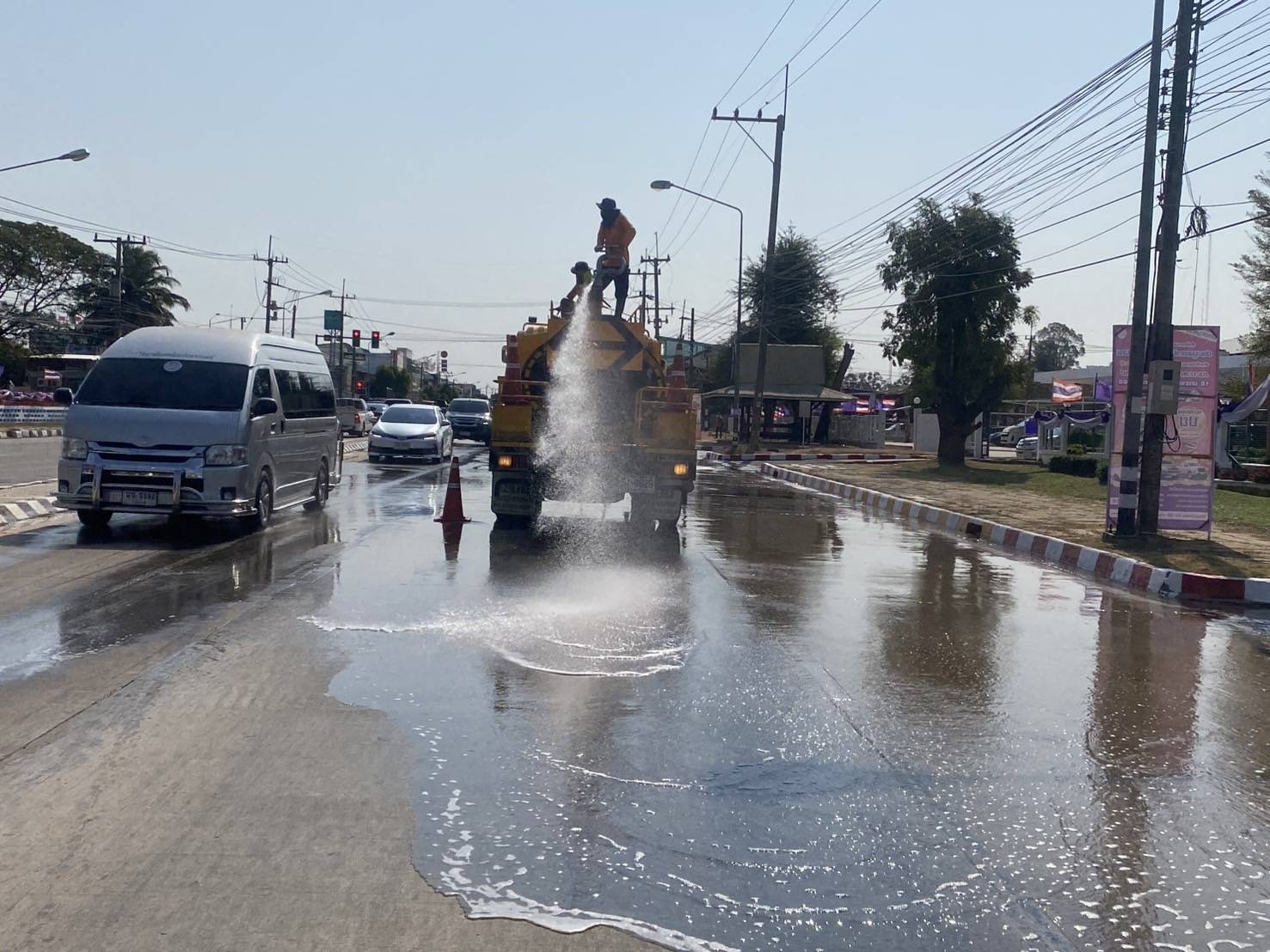 - ฉีดล้างทำความสะอาดพื้นถนน
