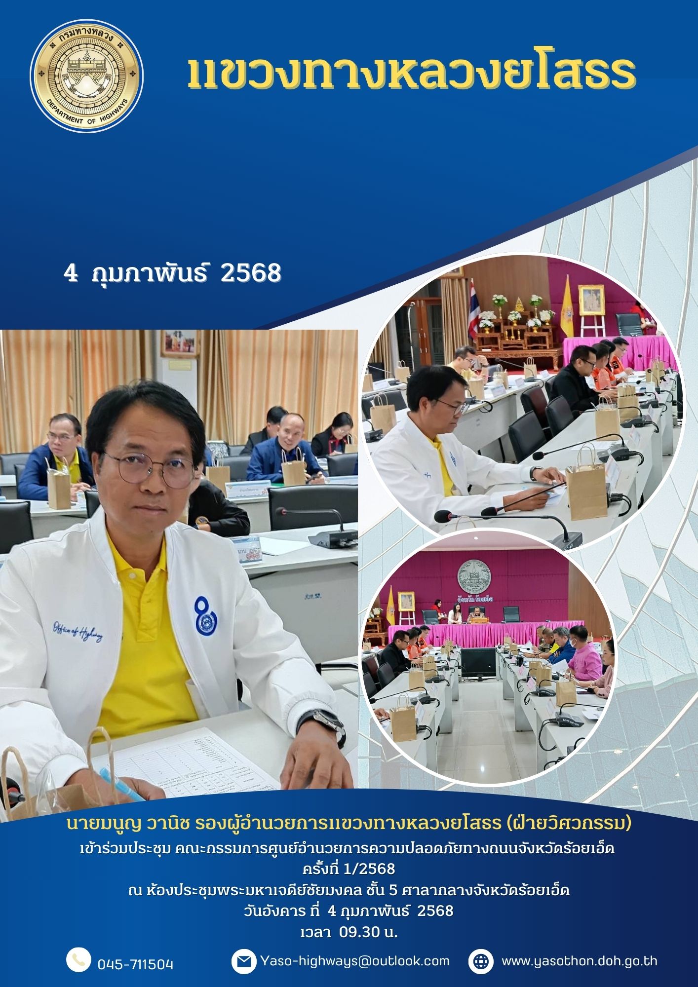 เข้าร่วมประชุมคณะกรรมการศูนย์อ่านวยการความปลอดภัยทางถนน จังหวัดร้อยเอ็ด ครั้งที่ 1/2568