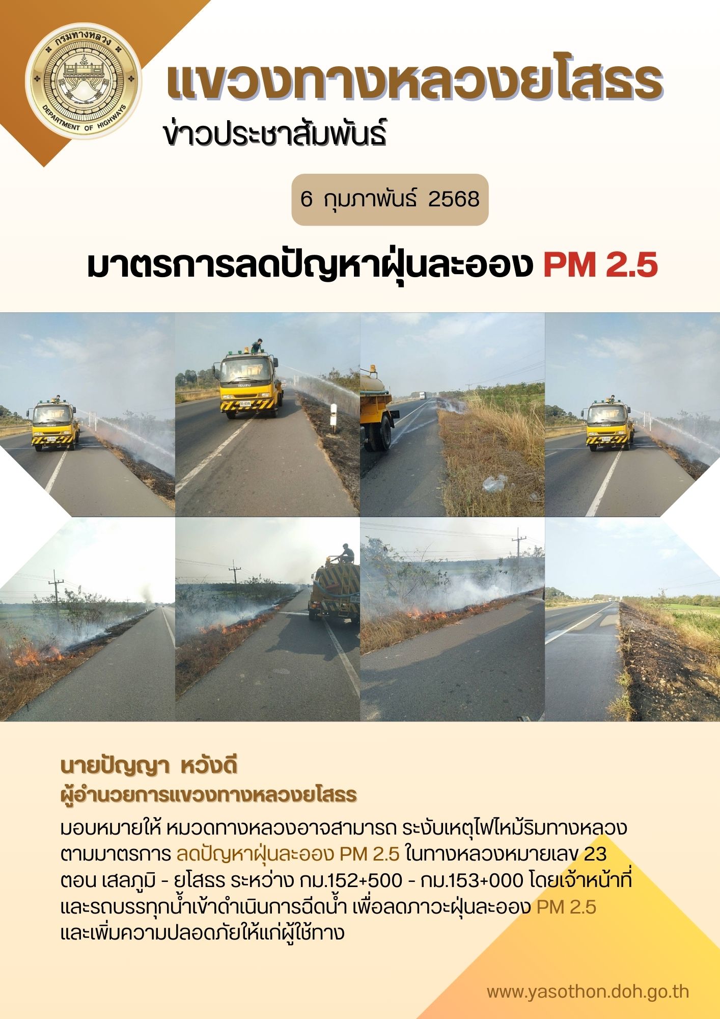 มอบหมายให้หมวดทางหลวงอาจสามารถ ระงับเหตุไฟไหม้ริมทางหลวงตามมาตรการ "ลดปัญหาฝุ่นละออง PM 2.5" ในทางหลวงหมายเลข 23